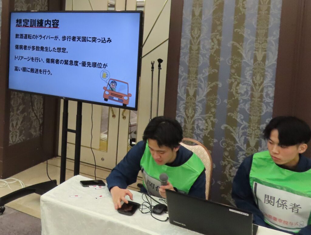 「強い意志、熱い思いを抱く救急救命士をめざす」 病院実習前に誓い新た 東洋医療専門学校救急救命士学科 徽章授与式 &‶救急指令!多数の傷病者発生″シミュレーション訓練
