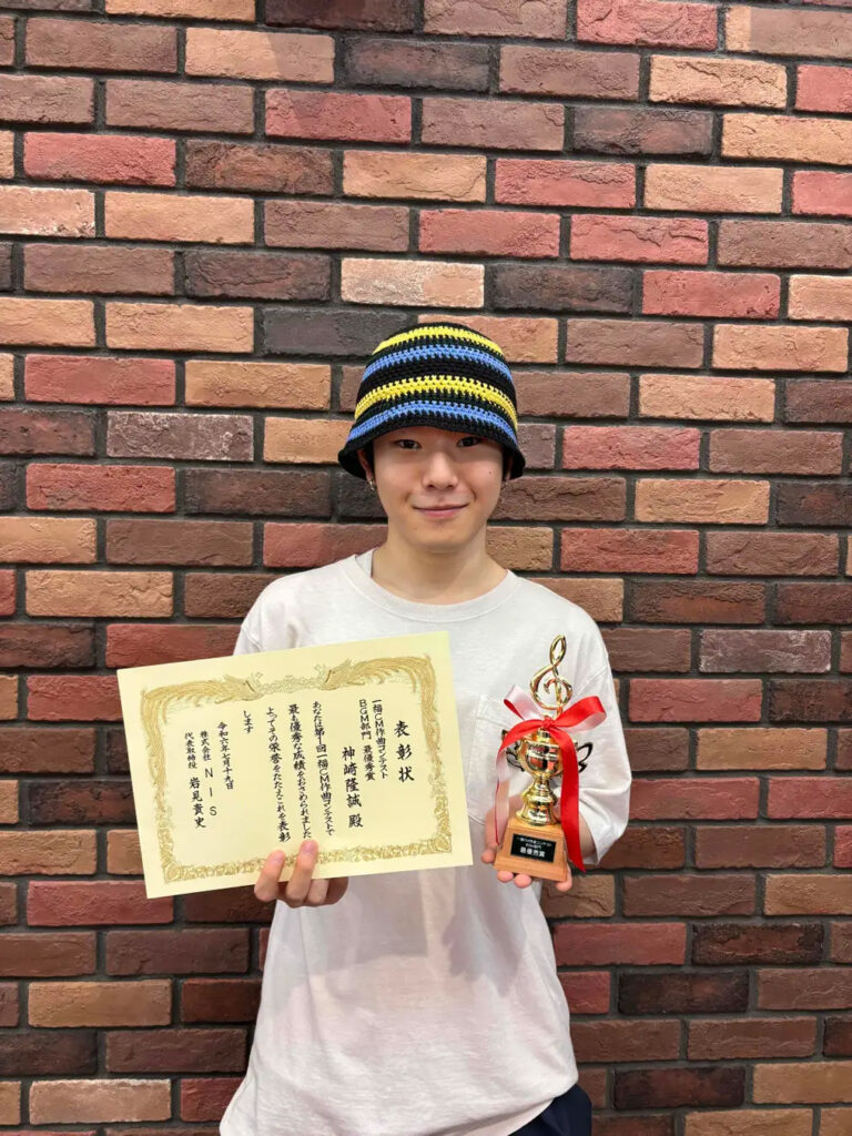 このたび、NISとの産学連携による「第1回一福CM作曲コンテスト」を開催しました。サウンドロゴ部門、BGM部門の2部門で学生たちの楽曲を募集。非常に高いレベルの作品の応募が多く、厳正な審査の結果、各部門で最優秀作品1点が選出されました。サウンドロゴ部門は佐久間俊彰さん、BGM部門は神﨑俊彰さんの作品です。