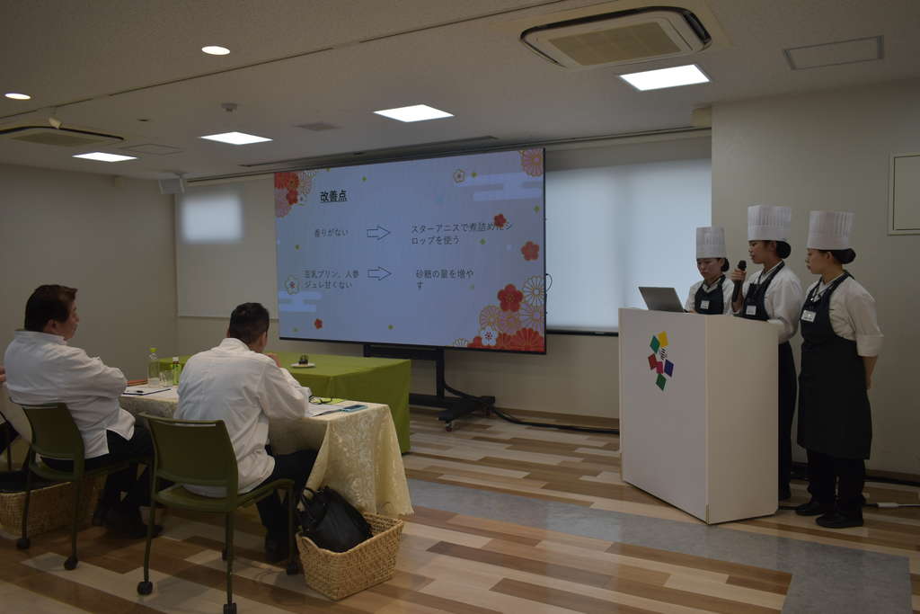 商品企画では原価計算も行い、実際にホテルで販売される価格やクオリティーを基準に、何度も試作を重ねてブラッシュアップしていきました。試食会や1次プレゼンテーション、最終プレゼンテーションの結果、最優秀賞、優秀賞などを獲得した作品は、期間限定でホテルで販売。大勢のお客様に購入して頂きました。