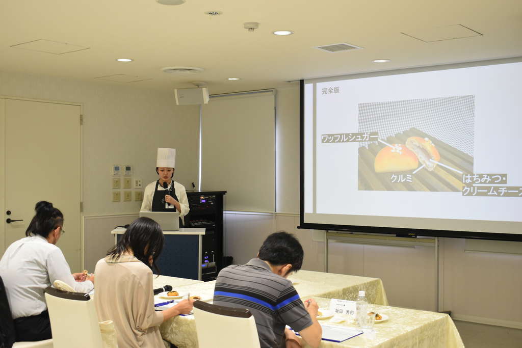 業務用では冷凍保存ができ、配送できる商品の考案をしました。学生たちは原価計算から行い、校内試食会、1次プレゼンテーション、最終プレゼンテーションで商品の提案をしました。