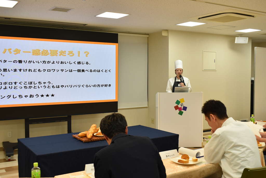 大手製粉会社2社の企業課題は味わい、食感、香りにこだわった、バケット・食パン・クロワッサンの開発です。コンセプト通りの商品を作るために、適した材料を選定し、何度も試作を重ねました。もっちりしたパン、ふんわりした感じ…。理想のパンになるよう試行錯誤した内容をパワーポイントにまとめ、プレゼンテーションを行いました。