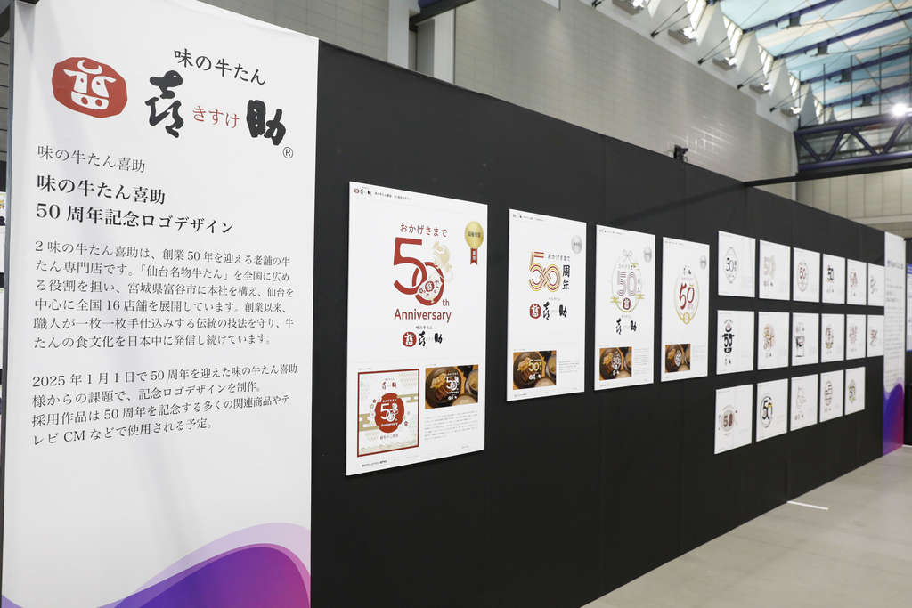味の牛たん喜助から創業50周年を迎えるにあたり、地域の未来を担う若い力と共に取り組みたいと、「記念ロゴデザイン」の課題をいただき、『これまでの歩みを支えてくださった多くの皆様への感謝の気持ちを形にしたいという想い』を込めたロゴ制作に、グラフィックデザイン&イラスト専攻2年とイラスト&グラフィックデザイン専攻3年の学生たちが取り組みました。