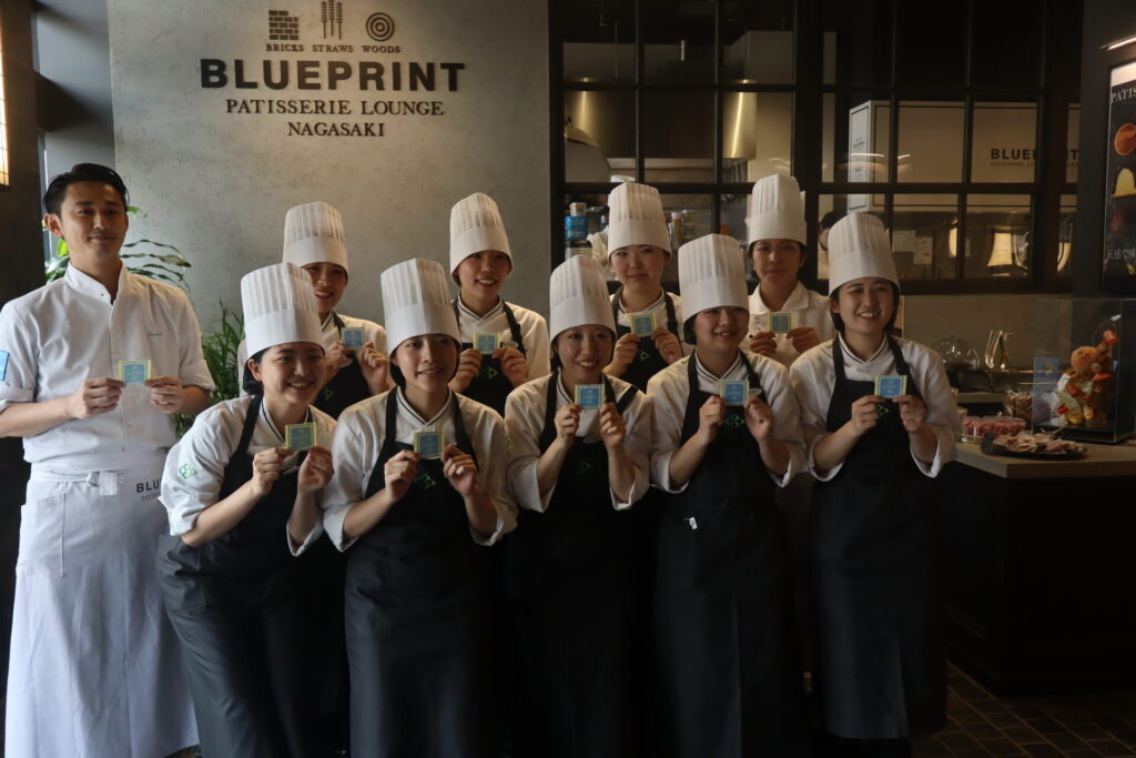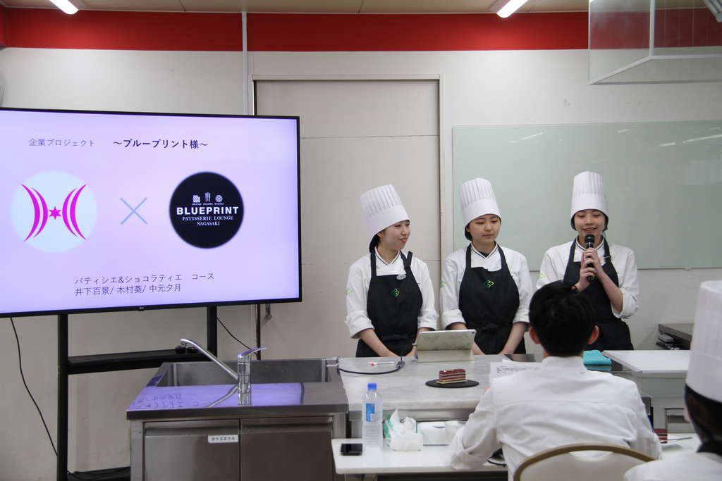 本格的なフランス菓子とアルコールを楽しめるパティスリー兼ラウンジ「BLUEPRINT PATISSERIE LOUNGE NAGASAKI」(長崎市)からフランス伝統菓子のアレンジ商品開発の依頼を受け、2024年の春から夏にかけ、学生たちがプロジェクトに取り組みました。