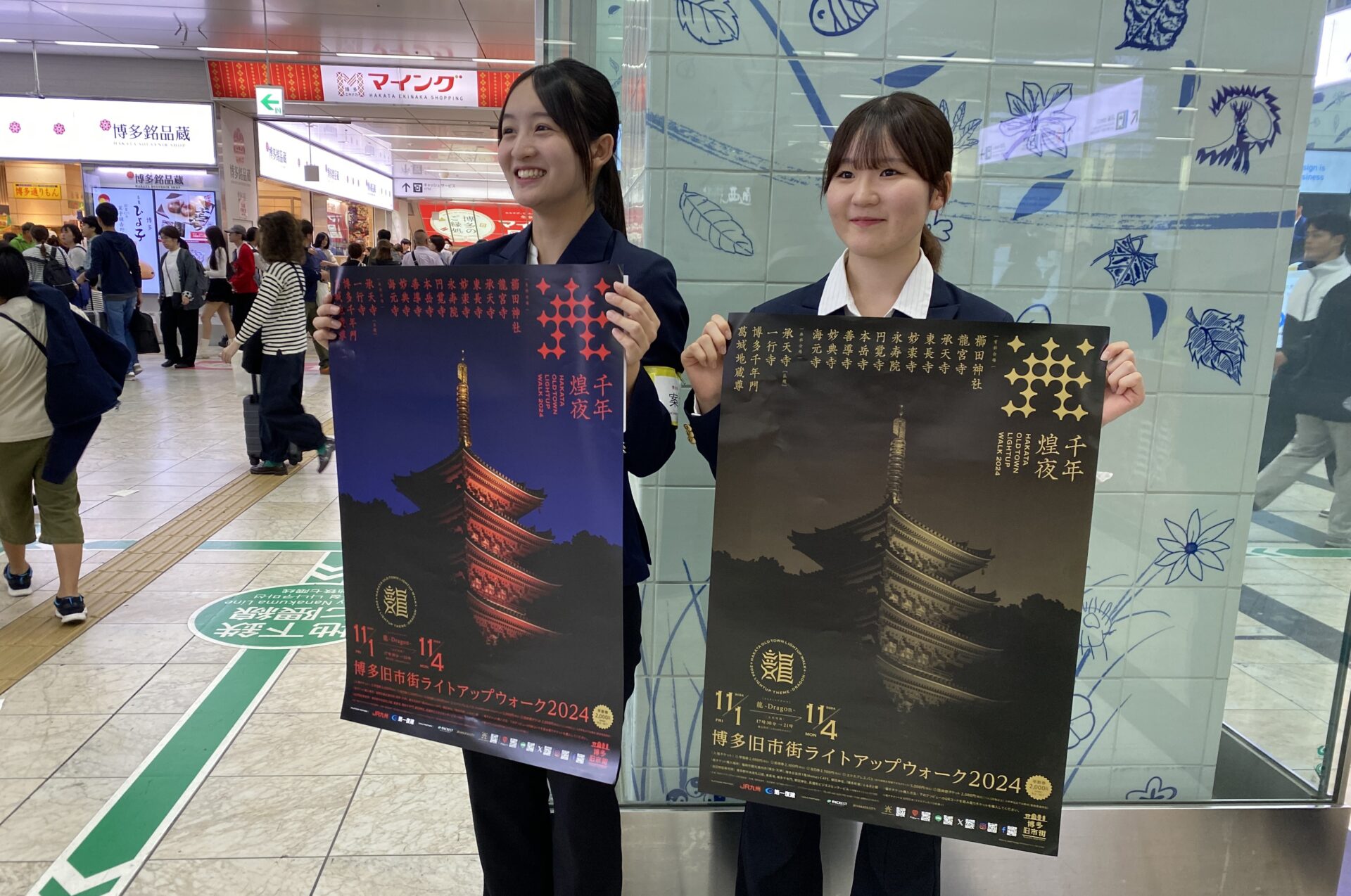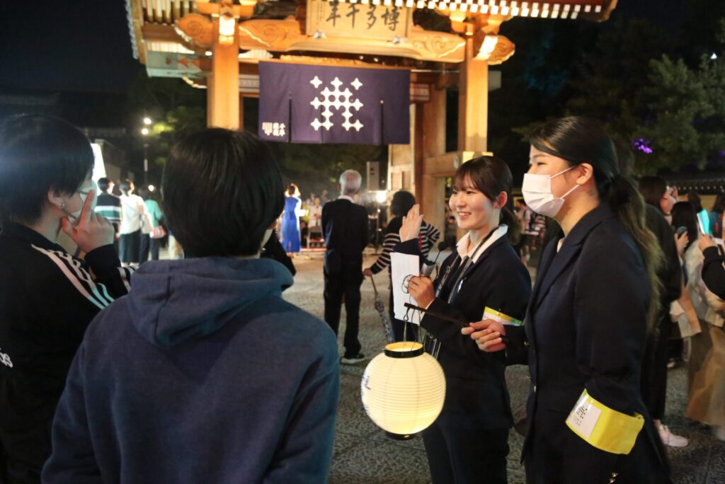 【産学連携】心を込めておもてなし 博多旧市街ライトアップウォークで学生たちが観光案内