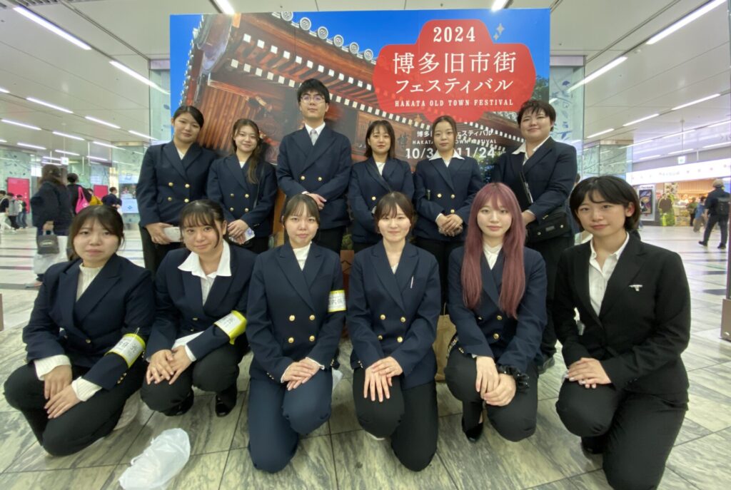 4日間にわたる活動では、地理に不安のあるお客様や初めて博多を訪れる観光客に対して丁寧な案内を心がけました。歴史的な建造物や場所などの案内、地元ならではの情報の紹介などを通して、来場者との温かな交流が生まれました。
