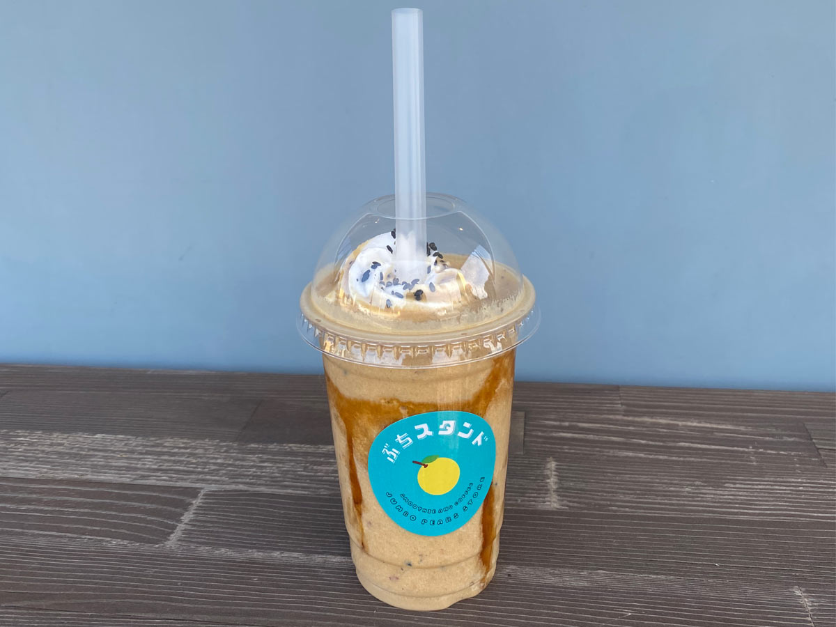 ぶちスタンドは荒尾市の大渕観光梨園が行っている事業。梨園でとれる梨は、規格外だったり、傷ついりしていたら売れないため、スムージーにしてキッチンカーで販売しています。そのフードロス削減の取り組みに共感し、学生たちはさつまいものスムージー商品を開発することを思いつきました。