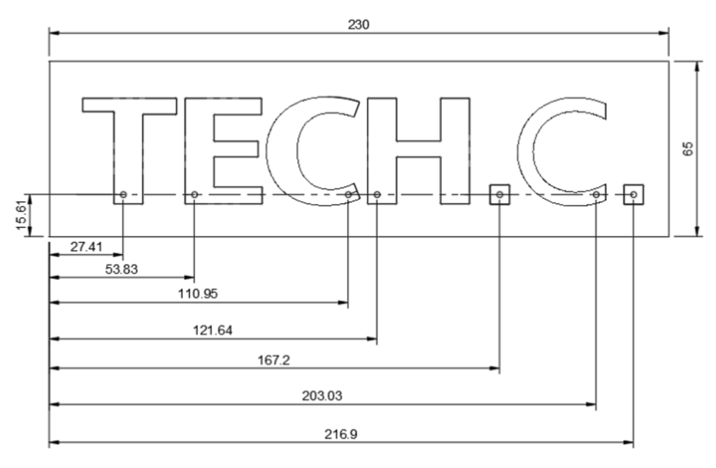 プロジェクトでは、まず超高性能加工技術について学び、ワイヤー放電加工機の特性と加工精度、加工技術を習得します。 加工するオブジェの設計等を企画し、 オブジェを作製しました。オブジェはステンレス板材に「TECH.C.」および「COMの」文字を切り出し、そして母材から文字が浮かび出させるものです。 また、その時の母材と文字とのクリアランスを5μm以内としました。