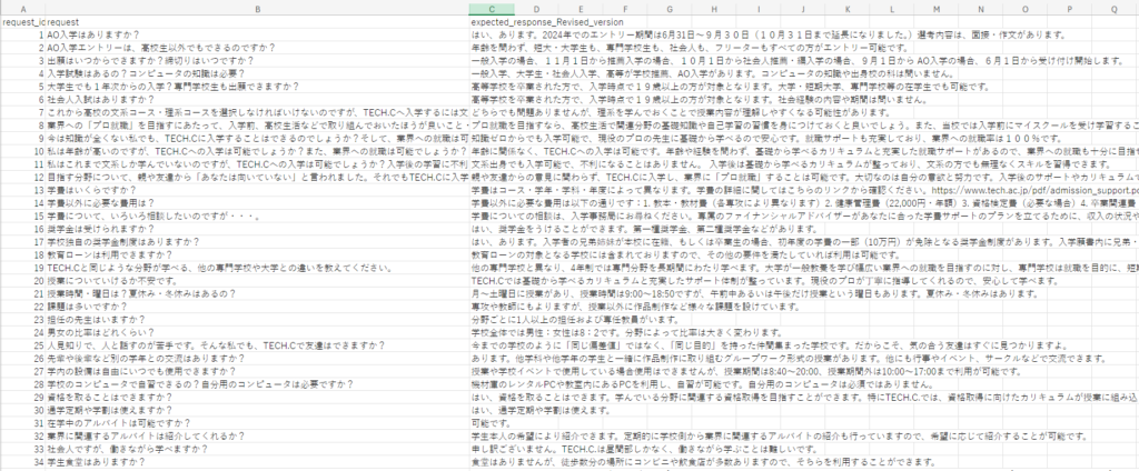TECH.C.で発行しているパンフレットやホームページ、生成AIに出力させた質問と回答の組み合わせからデータセットを作成し、TECH.C.RAGを作成しました。その後、精度改善モデルや生成AIによる評価を適応することで、もともと13%だった回答精度が70%と飛躍的に伸ばすことができました。70~80%はビジネスで利用できる指標であり、そのレベルを達成することができました。