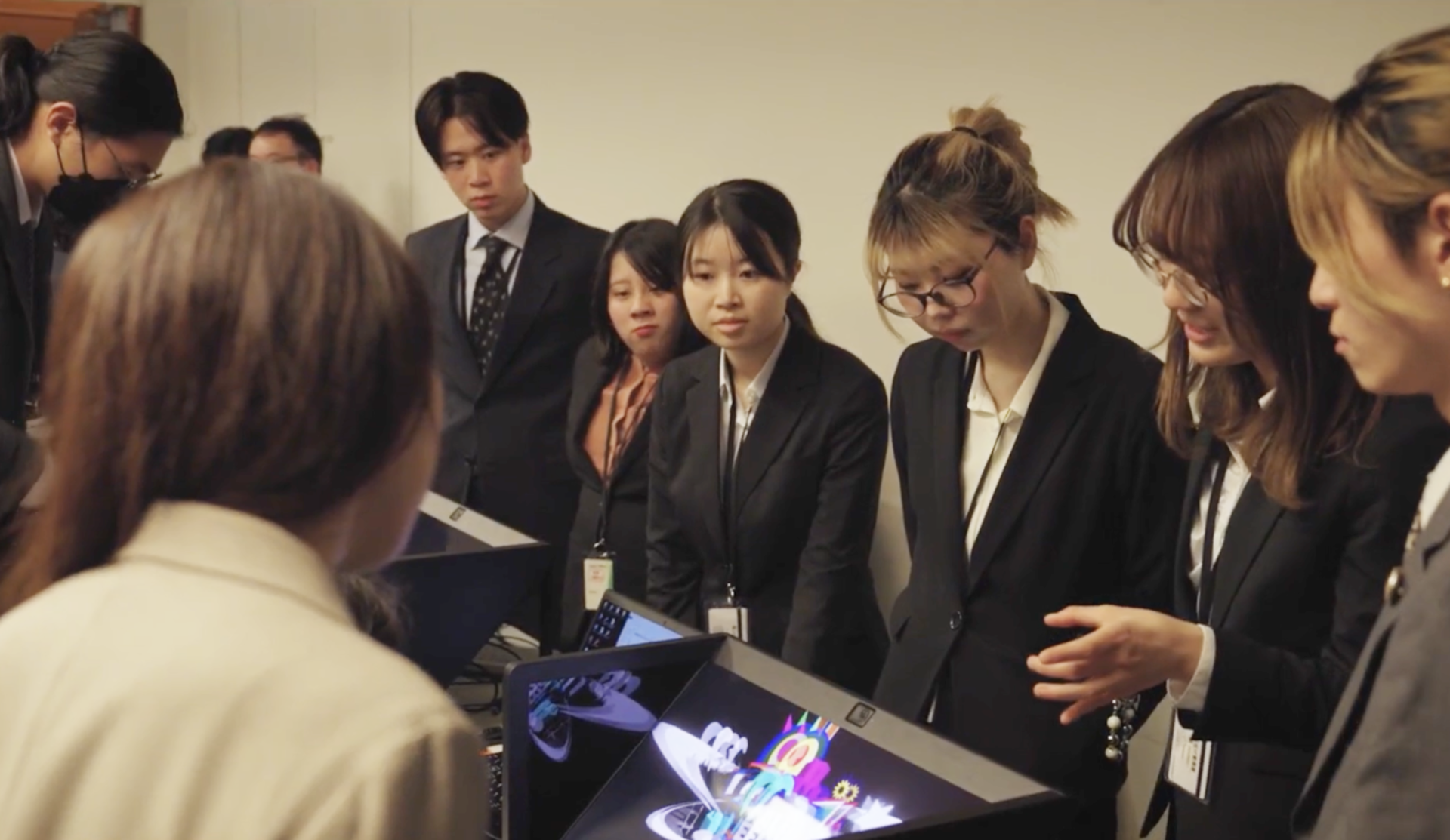 2024年10月のオリエンテーション実施後、実際にお借りしたデモ機をもとに、SRDに触ってみながらデバイスの特性を掴むことから本プロジェクトはスタートしました。その後、インダストリアルデザイン、グラフィックデザイン、3DCGクリエーターなど学生は、専攻を超えてチームを編成して取り組みました。企画提案にとどまることなく、アプリ実装までを学生たちが実施し、何度も検証を重ねることでアプリ実装にも成功しました。