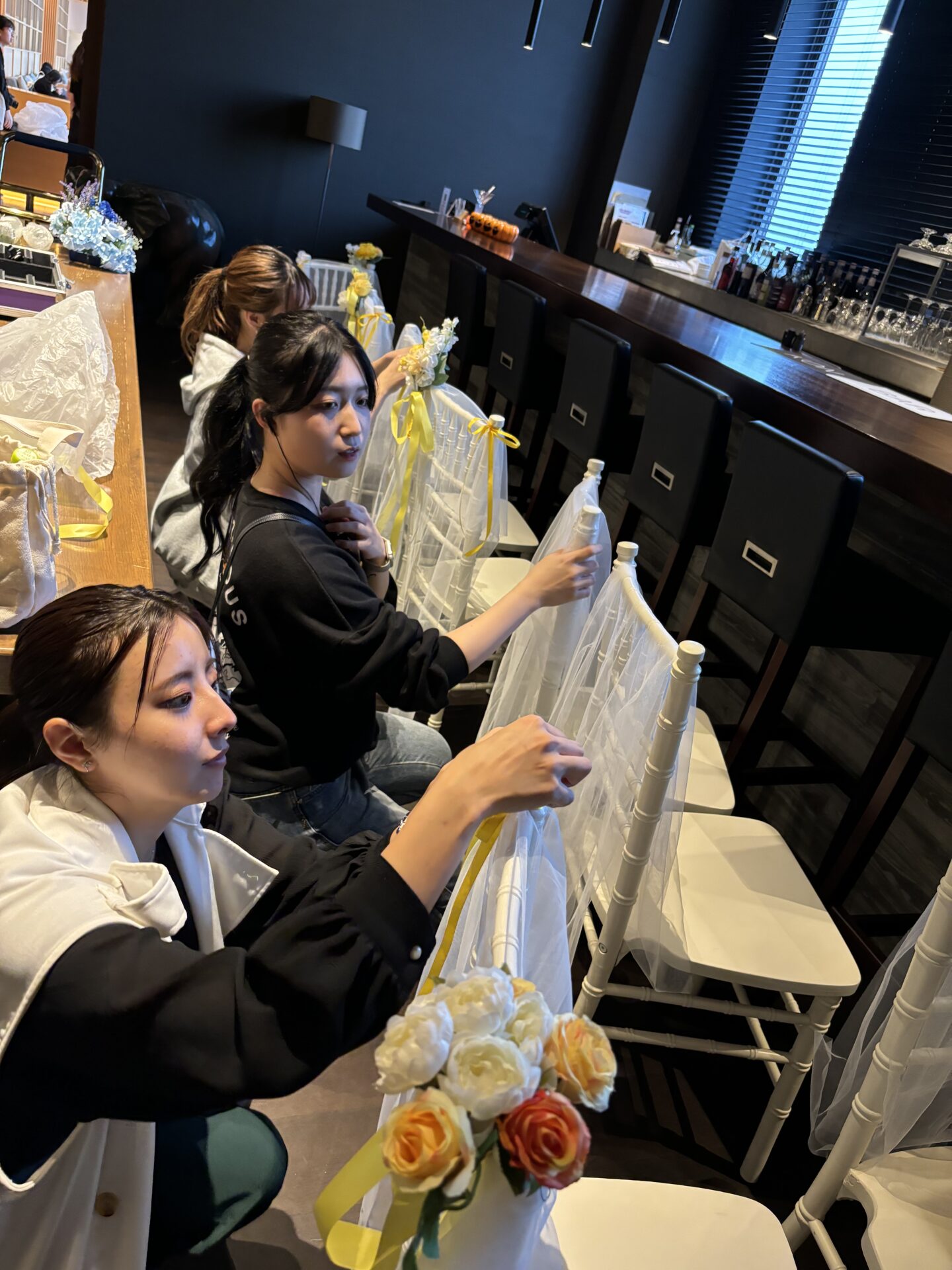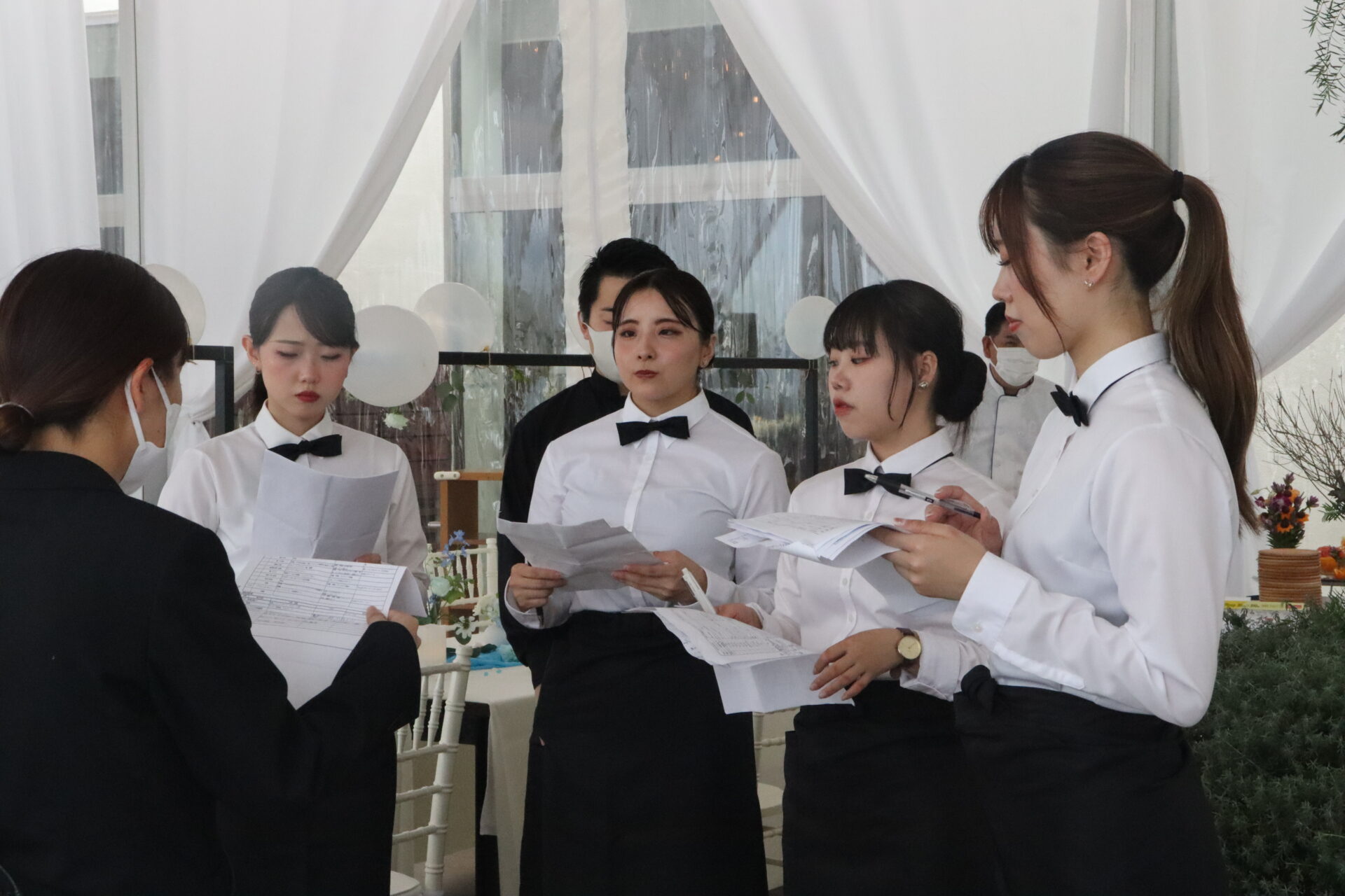 さらに2025年4月19日(土)には、成約したカップルの式がホテルで執り行われ、卒業した学生に代わって後輩2名がサポートスタッフとして参加しました。