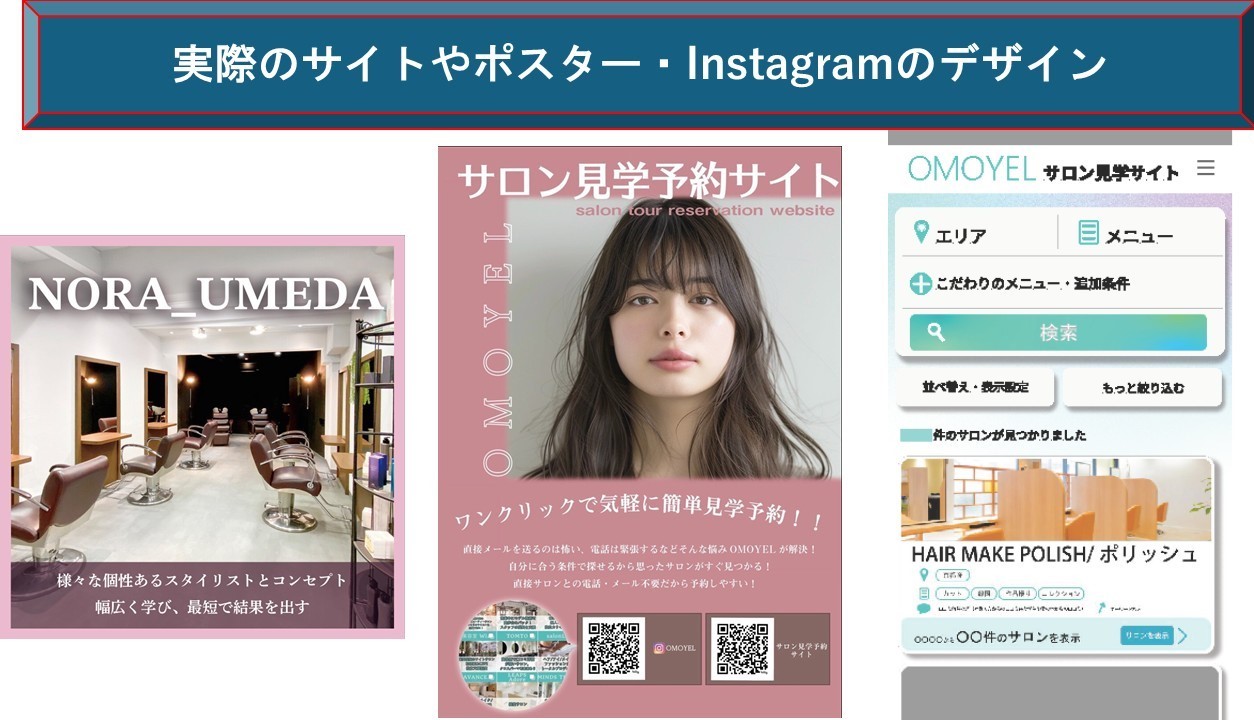 美容師を志す学生の就職支援の一環として、美容業界などの人材と企業を繋ぐ転職プラットフォームを運営するOMOYEL株式会社と協力して、サロン見学予約アプリを開発しました。ゆくゆくは離職率の高い美容業界の現状改善の一助となることも期待されます。