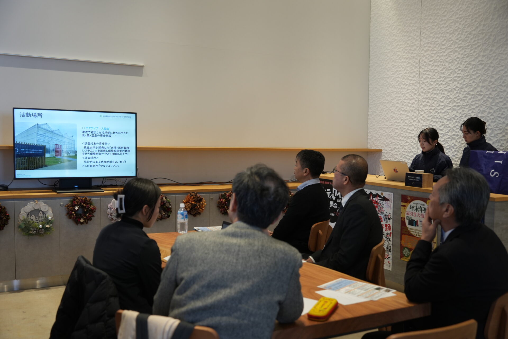 アクアイグニス仙台は、東日本大震災で甚大な被害を受けた仙台市東部沿岸部藤塚地区の集団移転跡地に、再び人が集える空間を作ることを目指して誕生した食・農・温泉の複合施設です。館内のマルシェでは、生産者とのつながりを大切に、仙台市、宮城県などの地場産品を新鮮な食品や加工食品を販売しています。