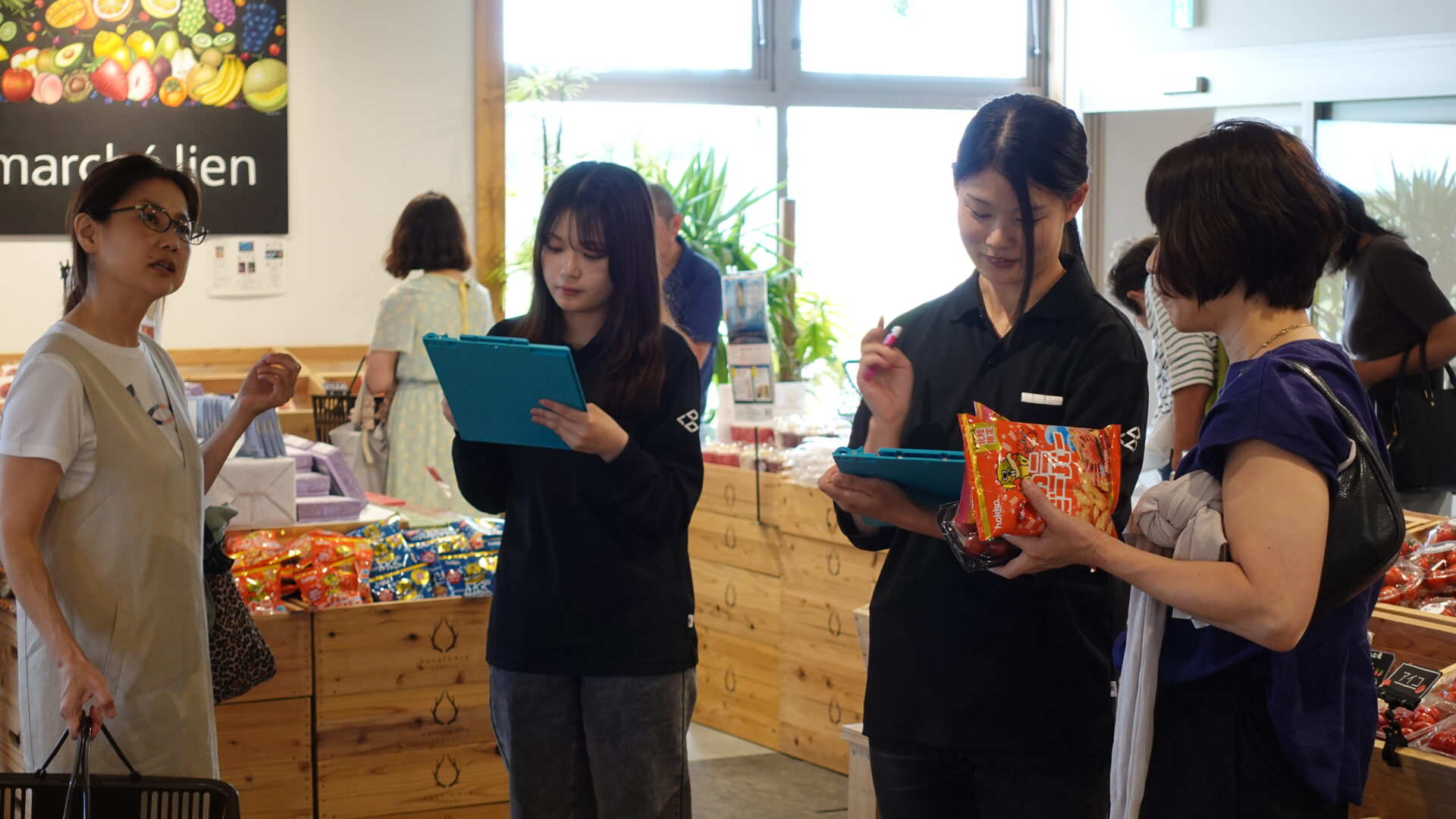 特に中高年女性が主な購買層である一方、若年層の来場は少なく、この層への情報発信が課題であるとしました。また、POPなどの簡易な情報提供では理解が深まりにくいため、QRコードによる動画紹介など、視覚的かつ具体的な情報提供が有効ではないかと考えました。