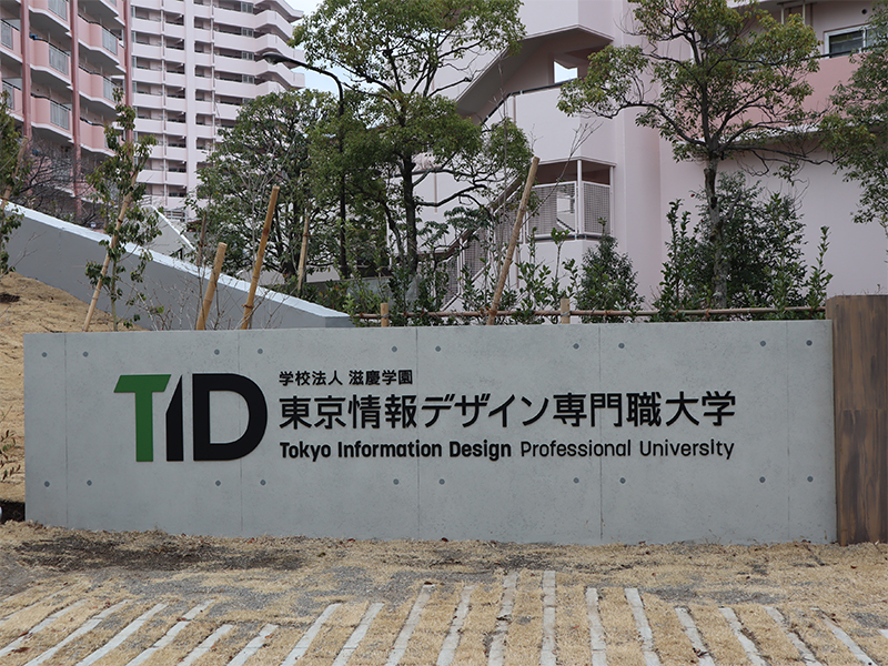 大学の正面を飾る「東京情報デザイン専門職大学」の石板