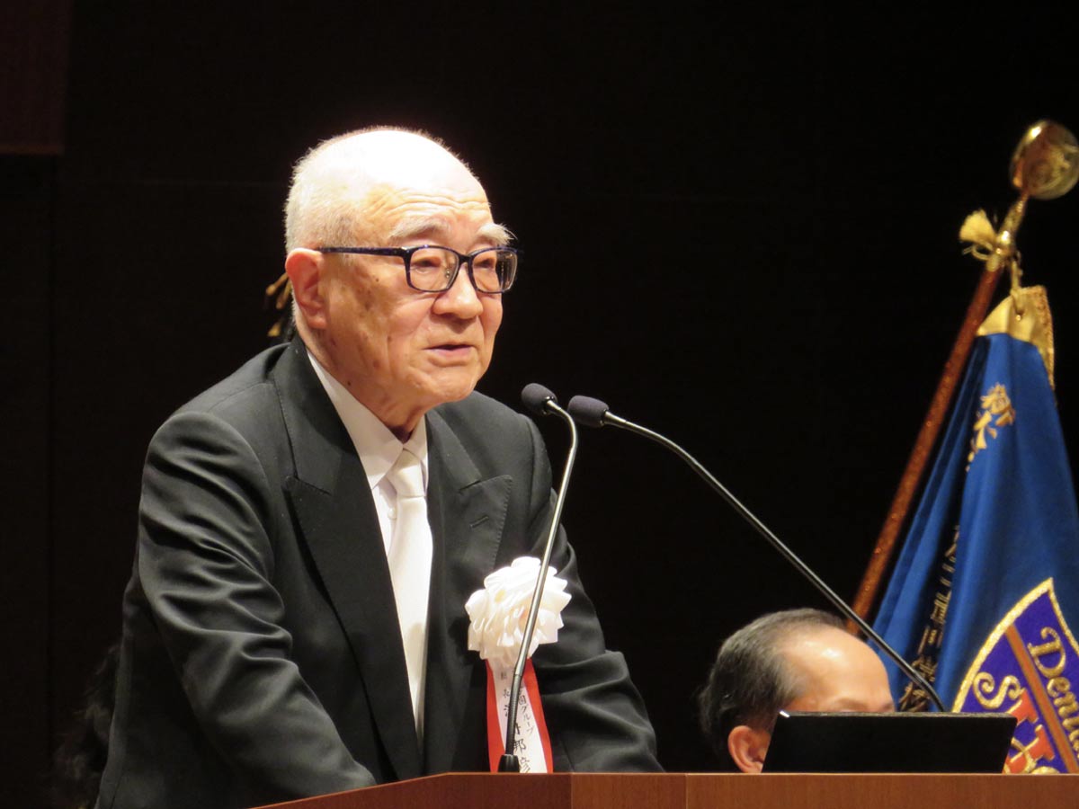 最後に「教員と先輩に対する敬意を失うことなく、生涯の友となる同僚との絆を大切にしてください。諸君の財産になるからです」と述べ、出会いを大切にしようという「一期一会」の心得を示しました。「諸君は今日から新しい出会いが待っています。その数は膨大で、教えられることも膨大であります。これを咀嚼しつつ、絆を大切にしてほしいと思います」と締めくくりました。