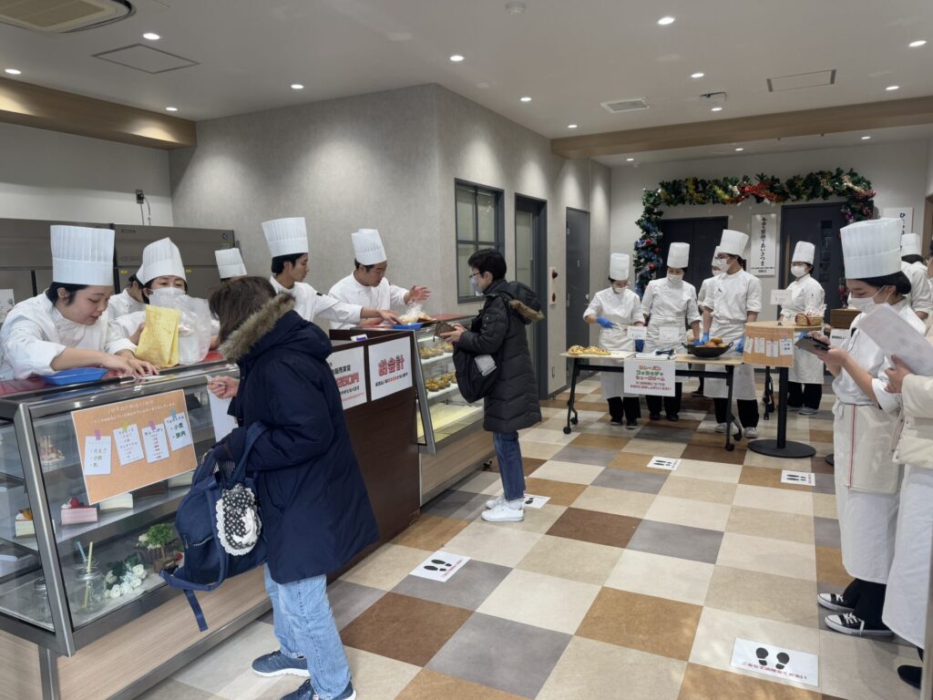 今回の販売実習を通じて、料理の技術だけでなく、チームで働く際には欠かせないコミュニケーション能力や、問題解決力も身につけることができたと思います。卒業後に調理師として活躍する学生にとってに、必ず役立つ経験になったことでしょう。これからも、お客様に喜んでいただける美味しい料理やお菓子を作り、提供できる力を養うため、日々の授業を大切に全員でどんどん成長して欲しいと思います。