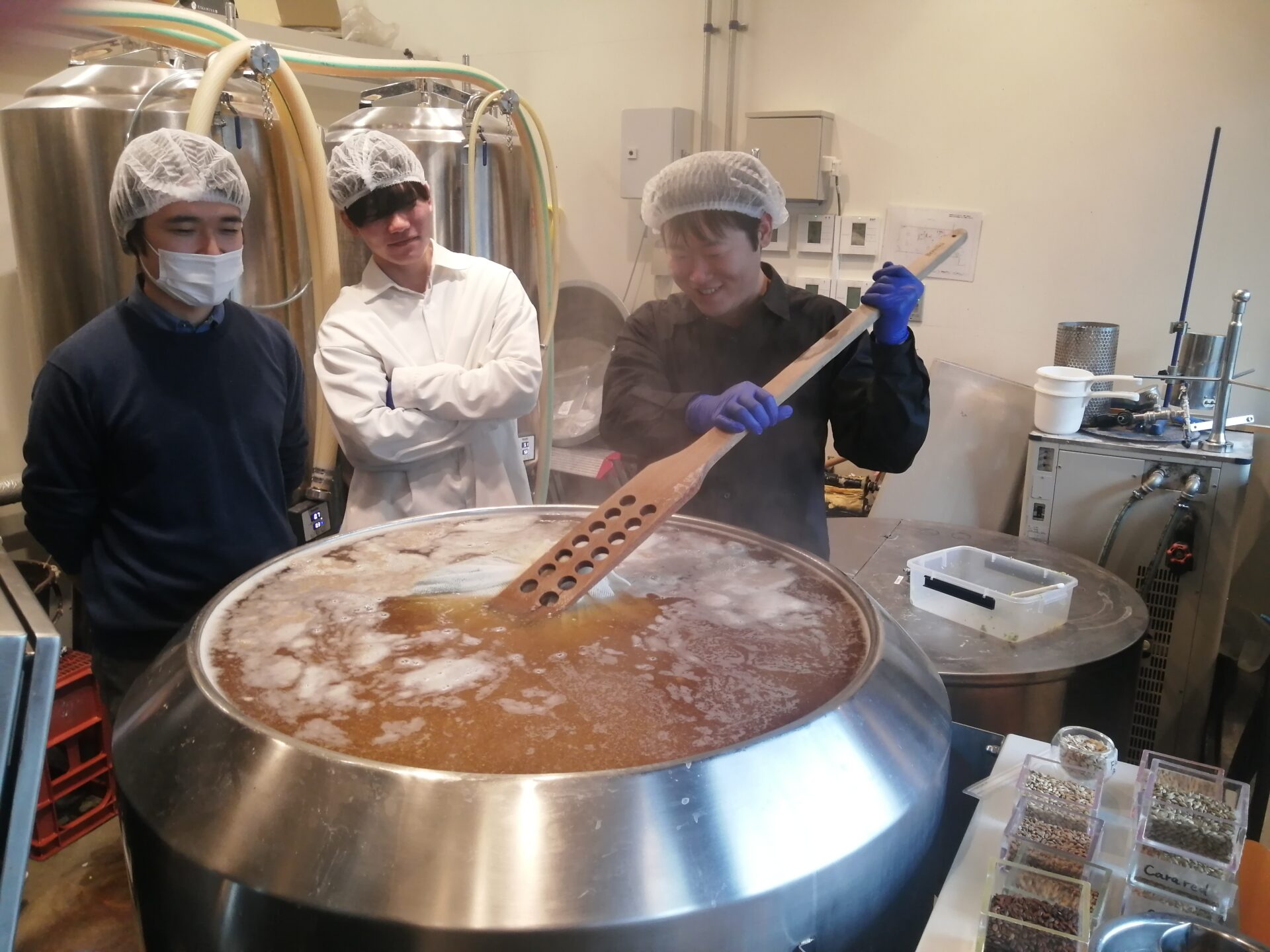 このプロジェクトでは、醸造発酵コースに所属する4名の学生研究班が、山形県鶴岡市で農家が大切に守り続けてきた地域特産の「在来作物」である「だだちゃ豆」を活用した新商品のエール(英国の伝統的なビール)の開発に挑戦しました。