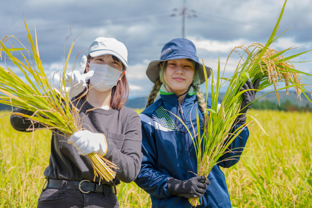 稲刈りに参加した大阪保健福祉専門学校 社会福祉科3年の女子学生は「子どもと親、おじいちゃん、おばあちゃんの三世代で参加している家族がいたのが印象的。家族で楽しみながら小さい子どもに米作りの大切さを教えるのはいいことだなと思いました」。同級生の女子学生も「稲刈りだけでなく、動植物の観察、地域の方々との交流など都会ではできない経験ができて楽しかったです。作業の後にいただいたカレーライスも最高!」と感想を述べました。