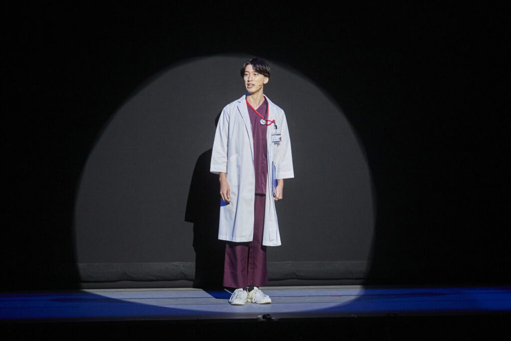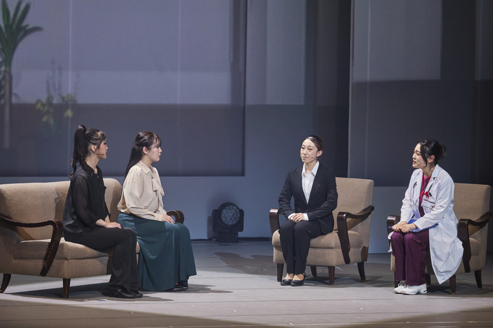 ミュージカルには、第三者の立ち合いのもとで行われるドナーが移植の最終確認をするシーンがあります。家族代表の同意が必要なこと、最終同意後は患者さんの移植準備が始まるため、原則として同意の撤回ができないことなどが、わかりやすく描かれています。また、家族代骨髄移植遙が倒れたシーンでは、医師役が現在のドナー登録者数や移植を希望する患者数といった現状、兄弟姉妹間で4人に1人、非血縁者間では数百人から数万人に1人であるというHLA型の適合率を伝えます。「ドナー登録者数は現在(2025年9月末)56万人。多いように思われるかもしれませんが、今後患者さんの増加が予想されることと、より確実な移植のために、理論上30万人を維持しなければならないのです」と説明し、最後の「骨髄ドナーがもっと増えることを願わずにはいられません」という言葉に、会場から拍手が湧き起こりました。
