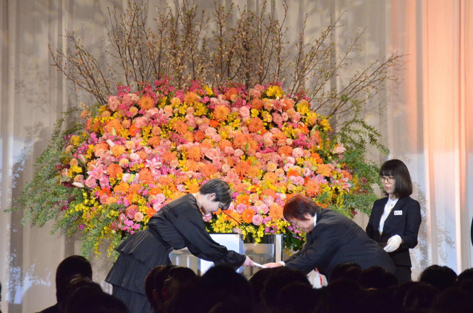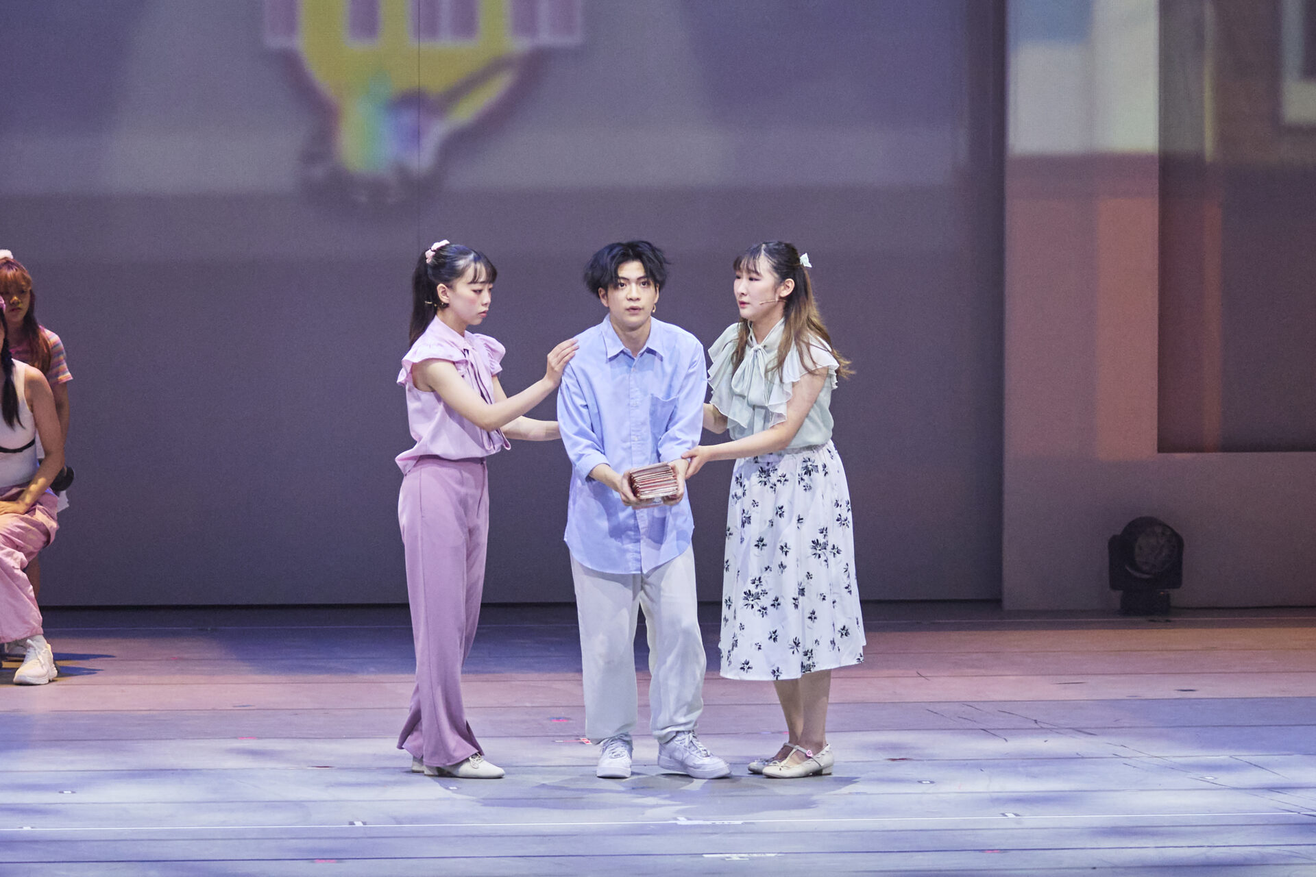 最後に三浦さんが「この舞台を作り上げた。総勢657名の学生たちです。たくさんの方に骨髄移植をご理解いただき、多くの命が救われることを願いながら、このミュージカルを続けて参ります」と力強く締めくくりました。ステージ上に黒いスタッフTシャツやスーツ姿の運営や音響、照明などを担当した学生たちが登壇すると、この日一番大きな拍手と歓声が会場に響き渡りました。