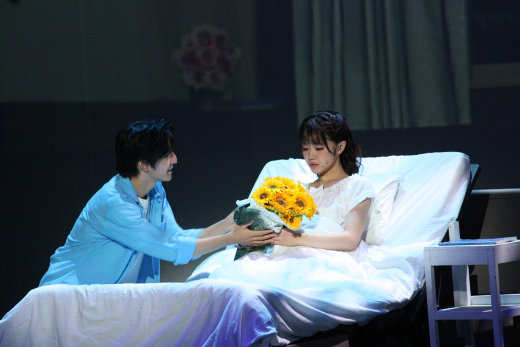 このミュージカルの大テーマは、1人のドナーによって救えるかもしれない命がある、と訴えること。ただ「感動の物語」というだけではなく、骨髄バンクの窮状や実際の白血病患者たちの苦悩をストレートに伝える演出が随所に盛り込まれました。