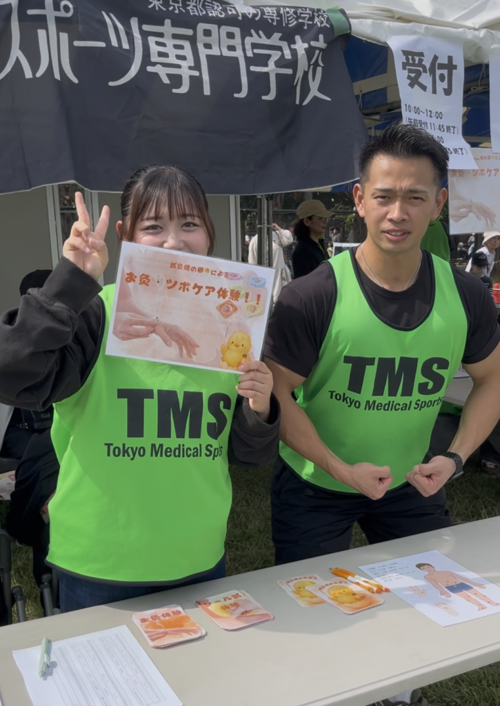 10月12日に開催された東京都江戸川区最大級のイベント「江戸川区民まつり」に、東京メディカル・スポーツ専門学校 鍼灸師科の1年生が「鍼灸師のたまごによるお灸・ツボケア体験」ブースを出展しました。本企画は、入学以来学んできた知識と技術を実践的な形でアウトプットし、早期臨床体験を通じて学びを深めることを目的に実施。当日は天候にも恵まれ、3歳のお子様からご高齢の方まで、約300名もの方々にお立ち寄りいただくなど大盛況となりました。