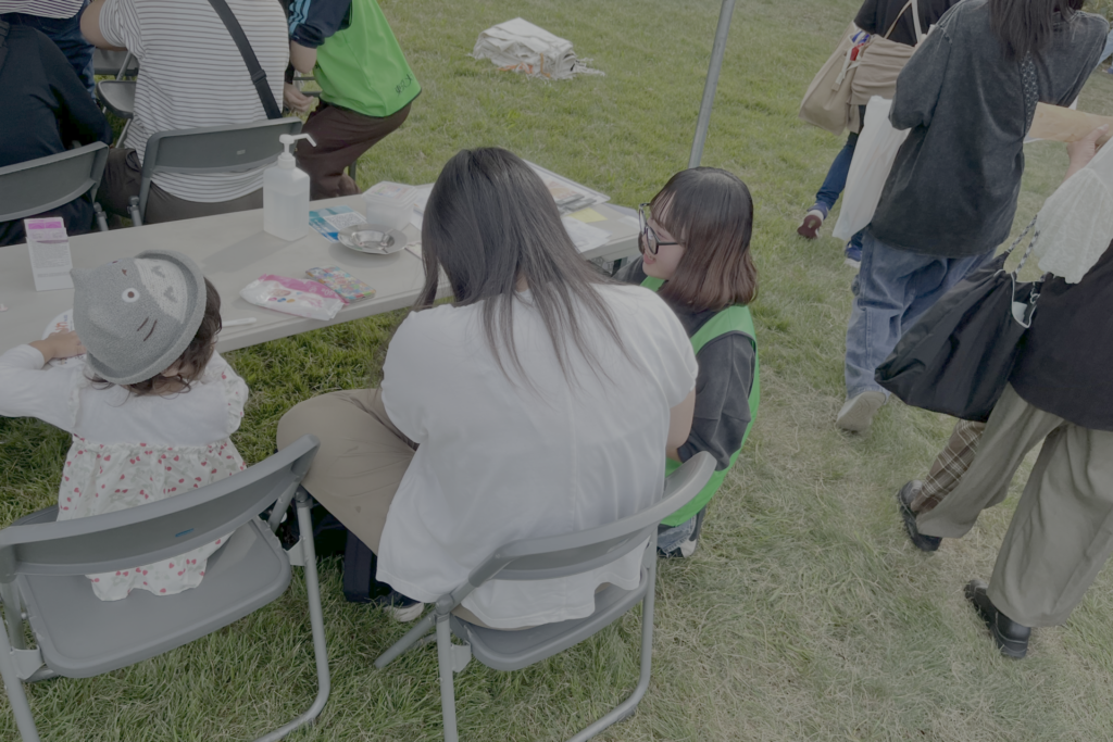 ブースでは、4月から履修している経絡経穴(ツボ)や鍼灸理論の知識を基に、学生たちが来場者一人ひとりのお悩みや体調を丁寧にカウンセリング。肩こりや腰痛といった主訴に合わせ、効果が高いとされる「特効穴」を選び、セルフケアとして手軽にできるお灸やシール鍼の体験を提供しました。