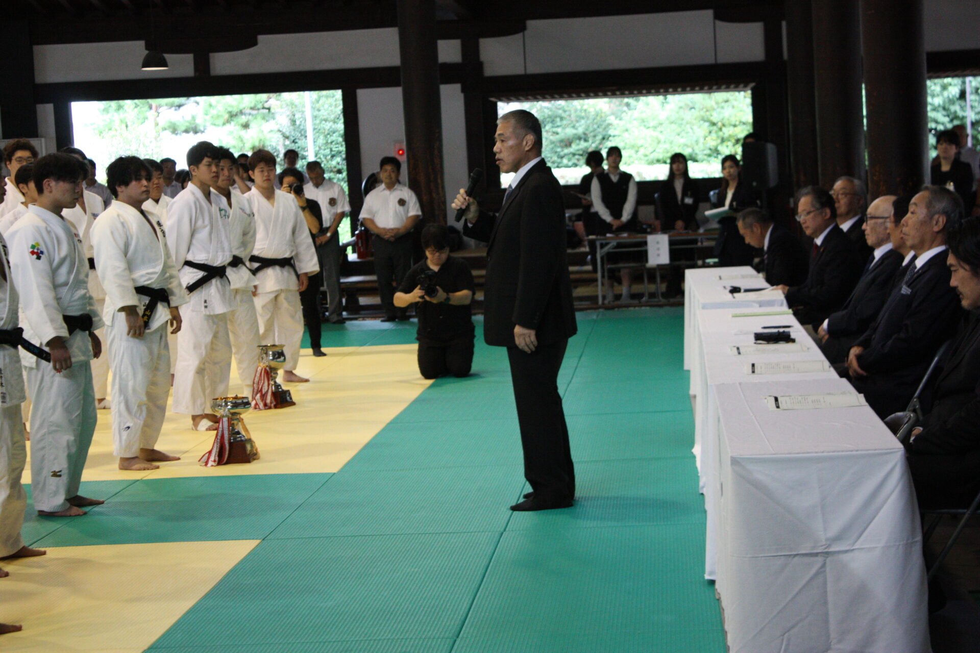 最後に東京メディカル・スポーツ専門学校の関口正雄学校長が閉会宣言。大会運営に携わった関係者へ謝辞を述べ、「旧武徳殿での大会再開にふさわしい、素晴らしい大会になりました。ありがとうございました」と締めくくりました。