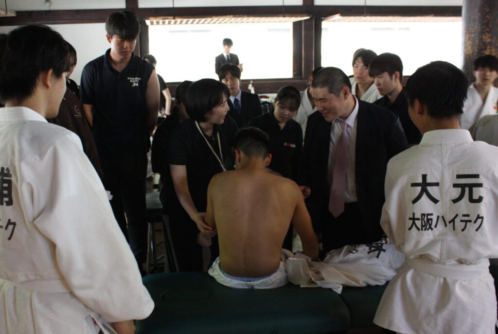 男子経験者初段の部決勝は、東京メディカル・スポーツ専門学校の森本優介選手が大阪ハイテクノロジー専門学校の平賀煌選手に勝利。男子経験者弐段以上の部は、仙台医健・スポーツ専門学校の阿部俊輔選手が東洋医療専門学校の渡邊琥次郎選手を息詰まる接戦の末に破り優勝を果たしました。
