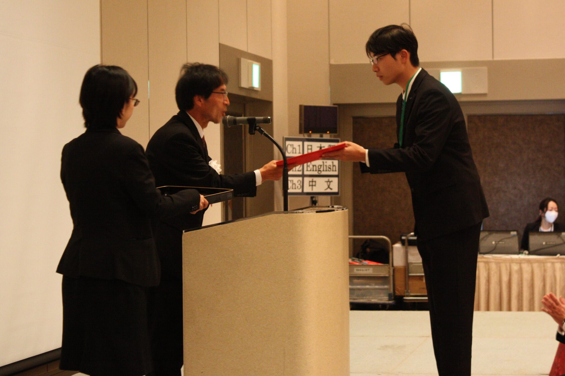 最後のプログラムはポスターセッションの表彰式です。今回は日本や中国の学生からご応募いただいた20のポスターから最優秀賞1演題、優秀賞1演題、日刊工業新聞社賞3演題、特別賞6演題の計11演題に賞が贈られました。