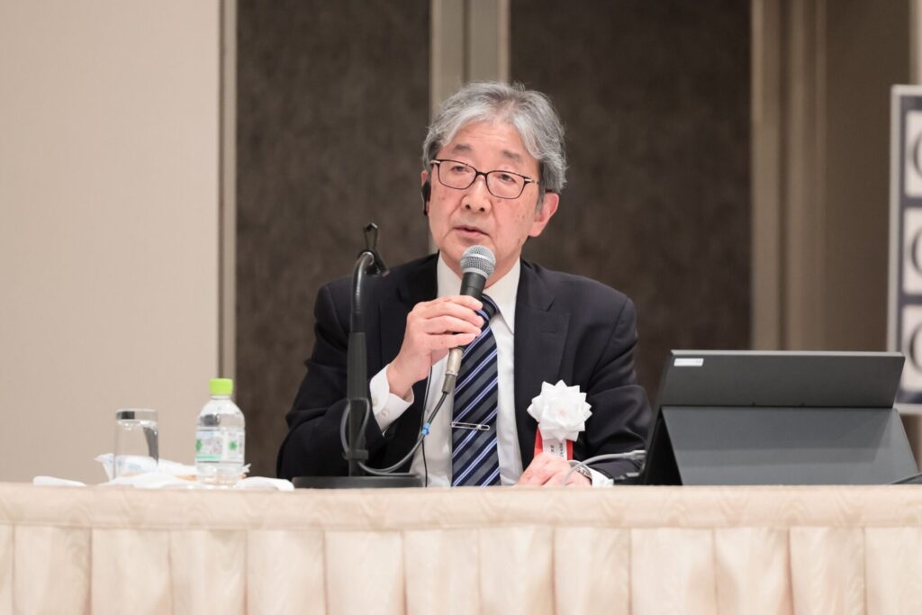 冒頭、実行委員会委員長である滋慶学園グループの浮舟邦彦総長があいさつに立ちました。浮舟総長は「AI(人工知能)など情報通信技術の発展は医療と福祉の現場に大きな変革をもたらし、特に臨床工学の分野は、医療機器の著しい進歩で高度化、複雑化しております」と臨床工学士の役割がますます重要になっている現状を強調。「今日この場で、生成AIを含む新しい技術をいかに臨床現場に取り入れるか、職種間の連携をどのように深化させていくか、といったことを議論し、共有していただければ。今回のフォーラムが臨床工学のさらなる発展と未来を担う人材の育成に貢献することを願っています」と述べました。