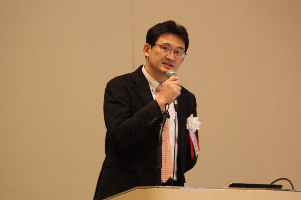 まず神戸市立医療センター中央市民病院 臨床研究推進センター プロジェクト推進部部長代理の吉田哲也先生が「医療機器開発の担い手としての臨床工学技士 ~健康寿命延伸と医療の効率化に向けて~」と題して講演。高齢化が進む日本では医療・福祉分野の人材不足が問題となっており、医療資源を効率的に運用するため、医療機器産業によるモバイルアプリやAI医療機器の開発が活発化していると指摘。「臨床工学技士は、医療機器に精通するだけでなく、医療機器開発の担い手としての役割も求められており、研究開発、事業化、産業振興、医療安全に貢献できる可能性がある」と強調しました。