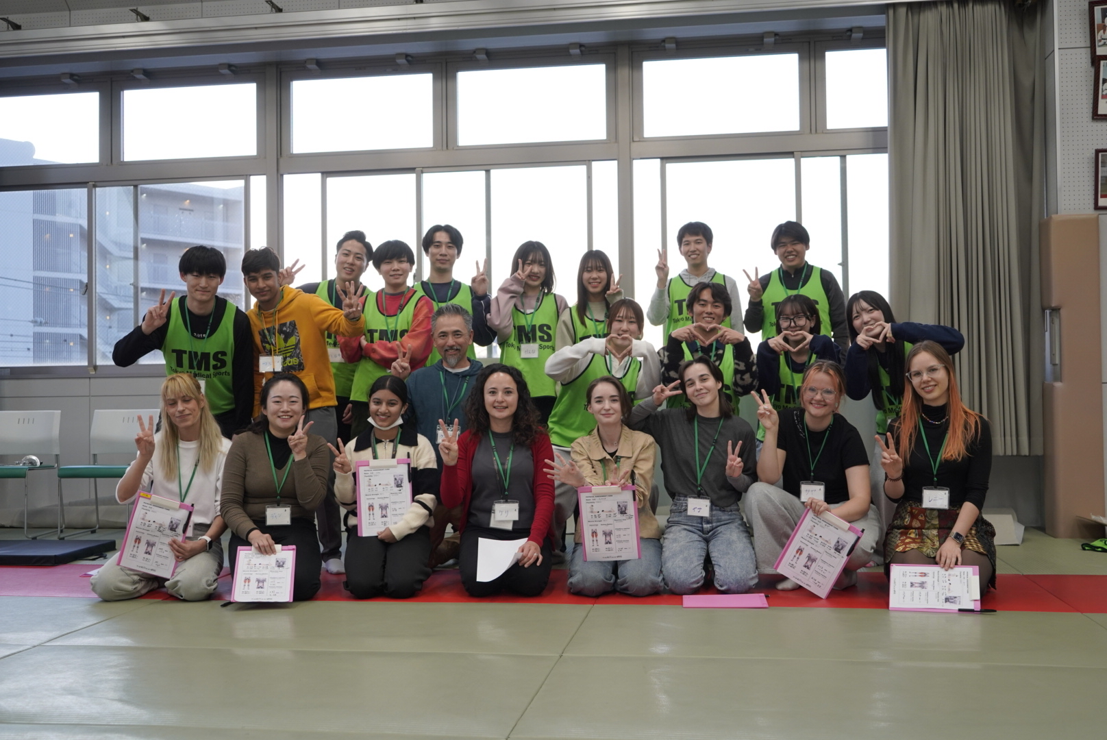 言語の壁があっても、身体を一緒に動かすことで自然と会話が生まれ、双方に笑顔が見られる場面が何度も見られました。ボディランゲージを交えた交流で、学生の学びがより深まる結果となりました。