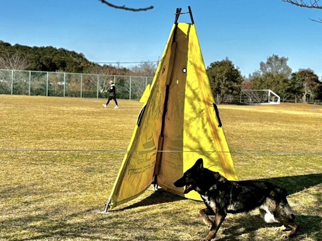 2日目は、滋賀県竜王町で開催されたJKC(ジャパンケネルクラブ)主催のアジリティー競技会(犬と人間が調和をとりながら 障害をクリアする、犬の障害物競走)とIGP競技会( 犬の訓練レベルと能力を競い合う国際的なスポーツ競技会)を見学しました。全国から多くの選手が集まる大規模な競技会で、学生たちはトップレベルの競技を間近で見る貴重な経験をしました。特に、作業犬としての総合能力を競うIGPは初めて見る学生も多く、強い関心を示していました。追及訓練・服従訓練・防衛訓練の3種目で構成され、犬と人との関係性を国際基準で審査するとても難しい競技で、将来この競技に挑戦したいと感じた学生も多かったのではないかと思います。