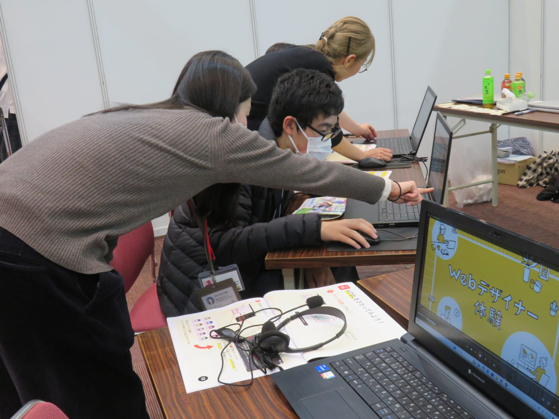 社会保険労務士、公認会計士、税理士、弁護士、教師、スクールカウンセラーといった「先生」の肩書がつく職業にも参加者の興味は広がりました。自衛隊ブースでは災害派遣中に使用する作業服を着用し、止血などの応急処置をしたり簡易担架で負傷者を運んだり、災害現場での救助活動を体験。またブレーンスタッフコンサルタンツのスタッフは、Webデザイナーのお仕事体験をサポートしました。