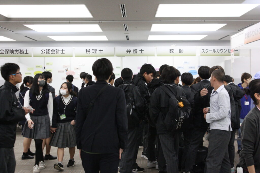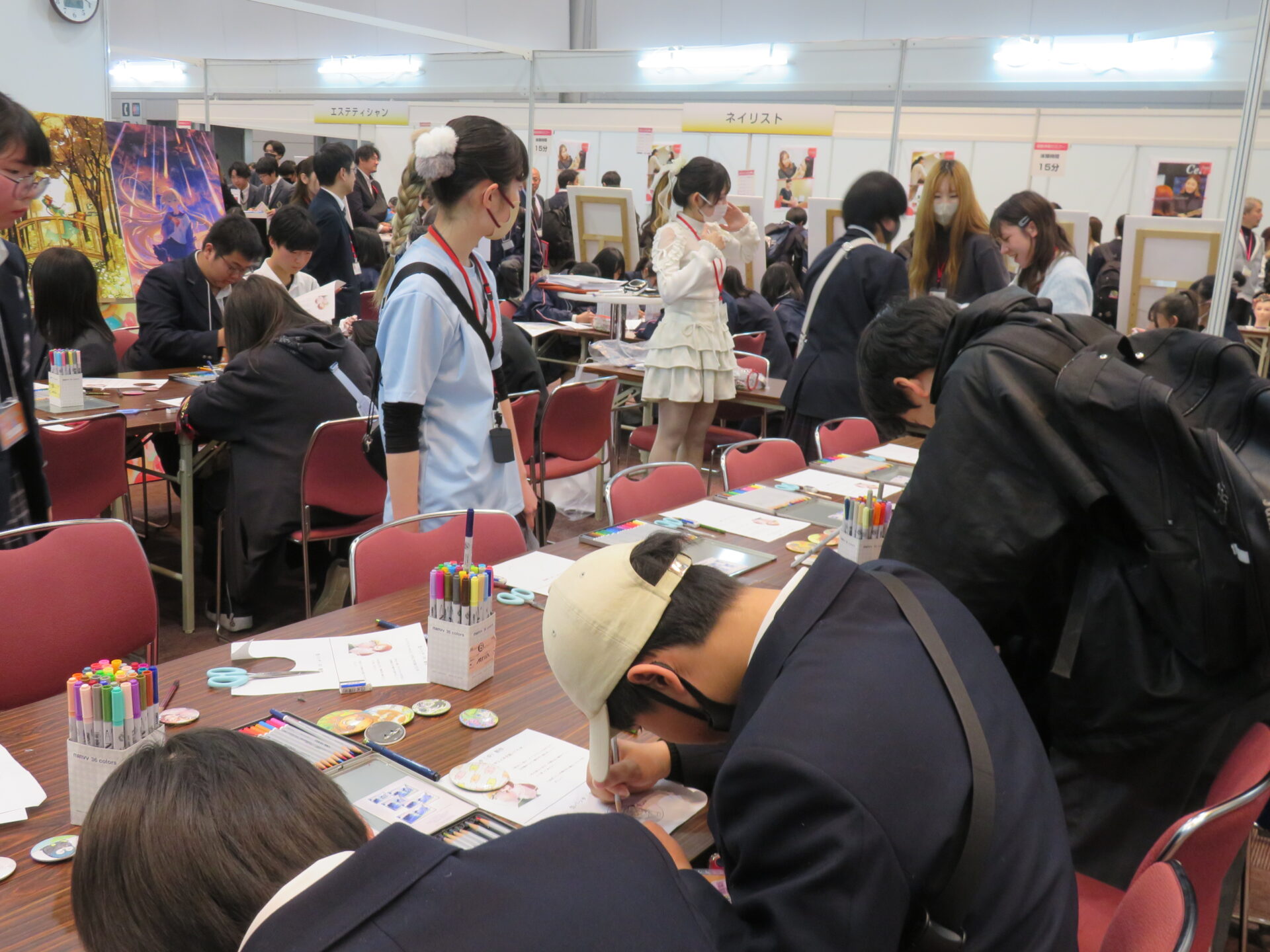 第25回目の開催となった職業体験セミナー。全国的に認知度が広がっており、わざわざ茨城県から訪れた高校生が熱心にブースを回っていました。また第10回職業体験セミナーからスタートした「作文・創作コンテスト」は、最優秀賞をはじめ受賞した4部門35作品のうち19作品が関西以外から。作文部門の最優秀賞は中学生・高校生ともに地方からの応募でした。授賞式に出席した生徒たちも熱心に体験をしていました。留学生の参加者が増えたのも今回の特徴でした。