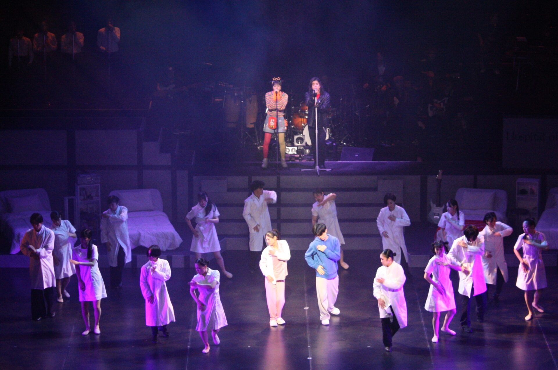 少女と難病の少年は心を寄せ合っていきますが、少年はある日、みんなの前で倒れます。彼の病気は白血病だったのです。院長とスタッフがステージで「白血病患者を救うための骨髄移植は、HLAという白血球の型が一致しなければなりません。一致する確率は血縁関係がない場合、数百分の一から数万分の一と言われています。より多くの患者を救うためには1人でも多くのドナー登録が必要です」と骨髄移植と骨髄バンクへの理解を訴える場面もありました。