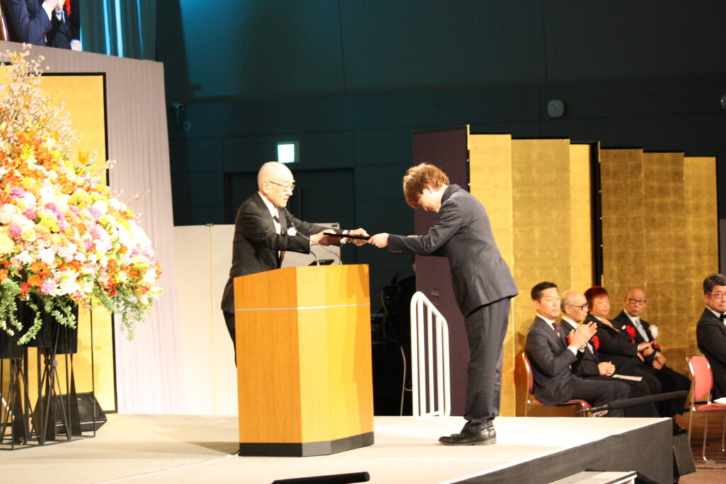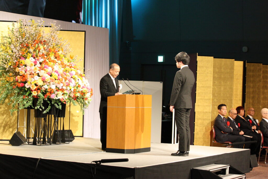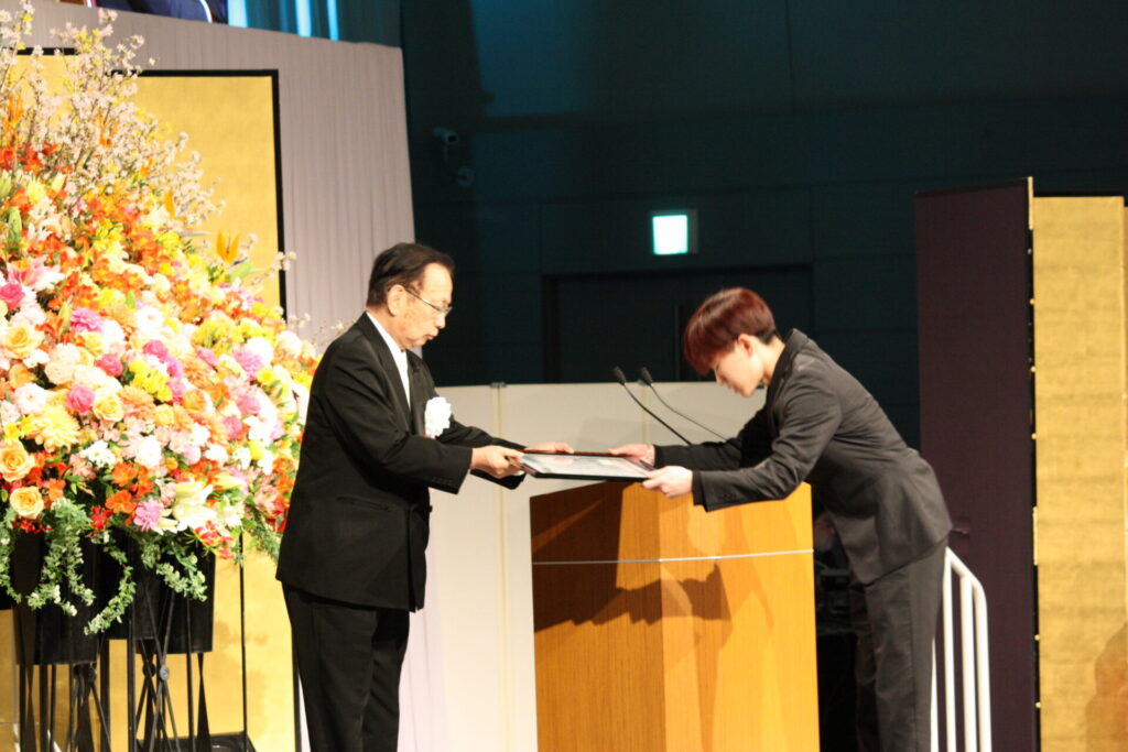 グループが1994年以来続けてきた社会貢献ミュージカル『明日への扉』と『明日への扉 Hospital Of Miracle』はこれまで28万人以上の観客を動員。白血病の治療への理解と支援に繋がっています。今年度、全国で上演された20公演で、素晴らしいパフォーマンスで感動を呼んだ学生4名に俳優賞が贈られました。表彰の最後は総長賞です。学生たちの社会貢献活動の中で、特に優れた活動を称える総長賞は、『明日への扉』大阪・関西万博公演を成功させたOSM・DA・OSM高等専修のグループなど7チームに贈られました。