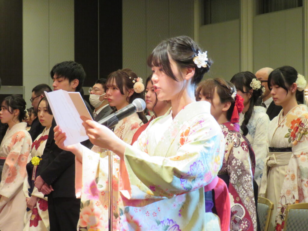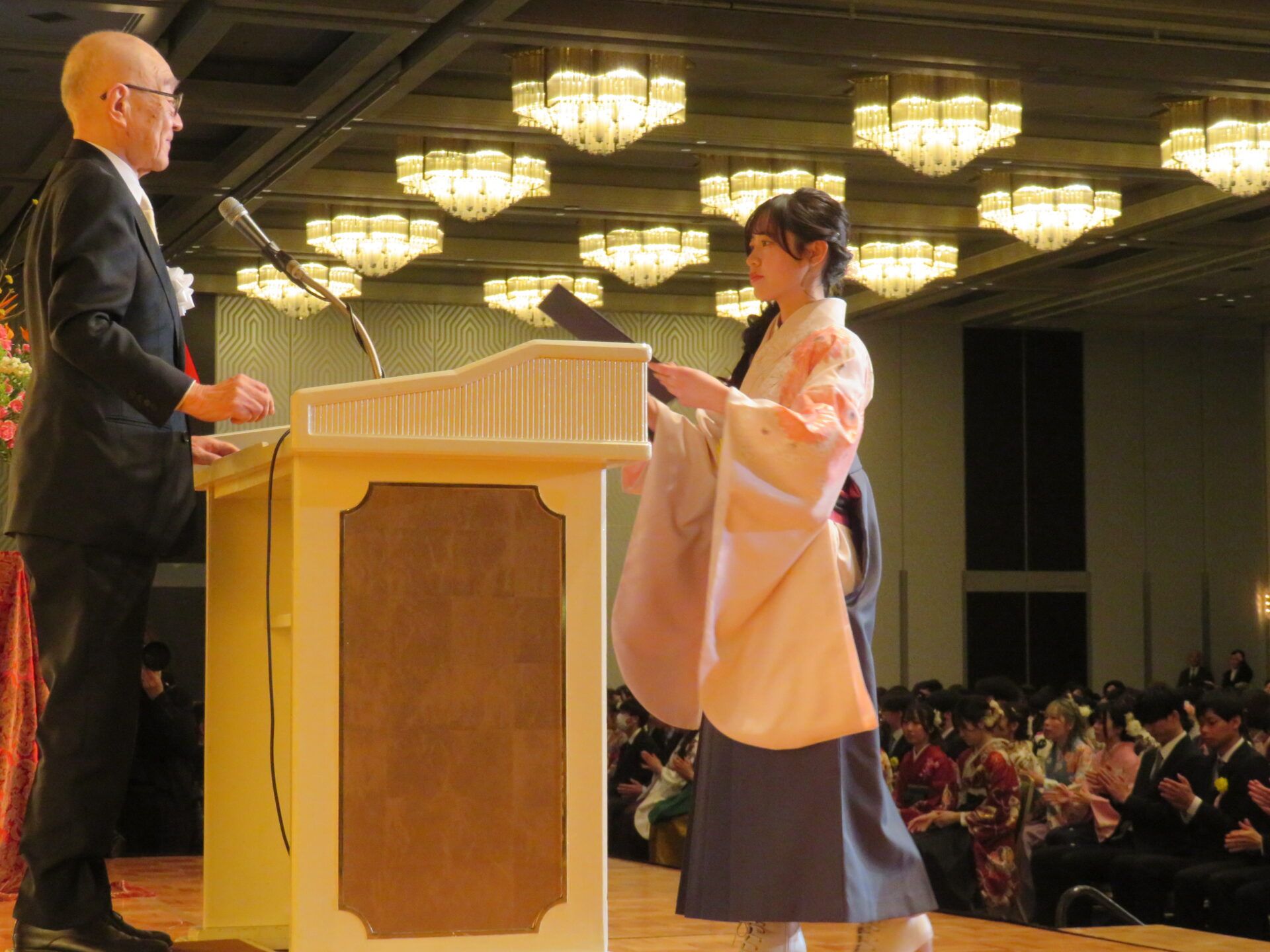 大阪医療技術学園専門学校 臨床検査技師科の山本華さんは保護者席に向かって謝辞を述べました。