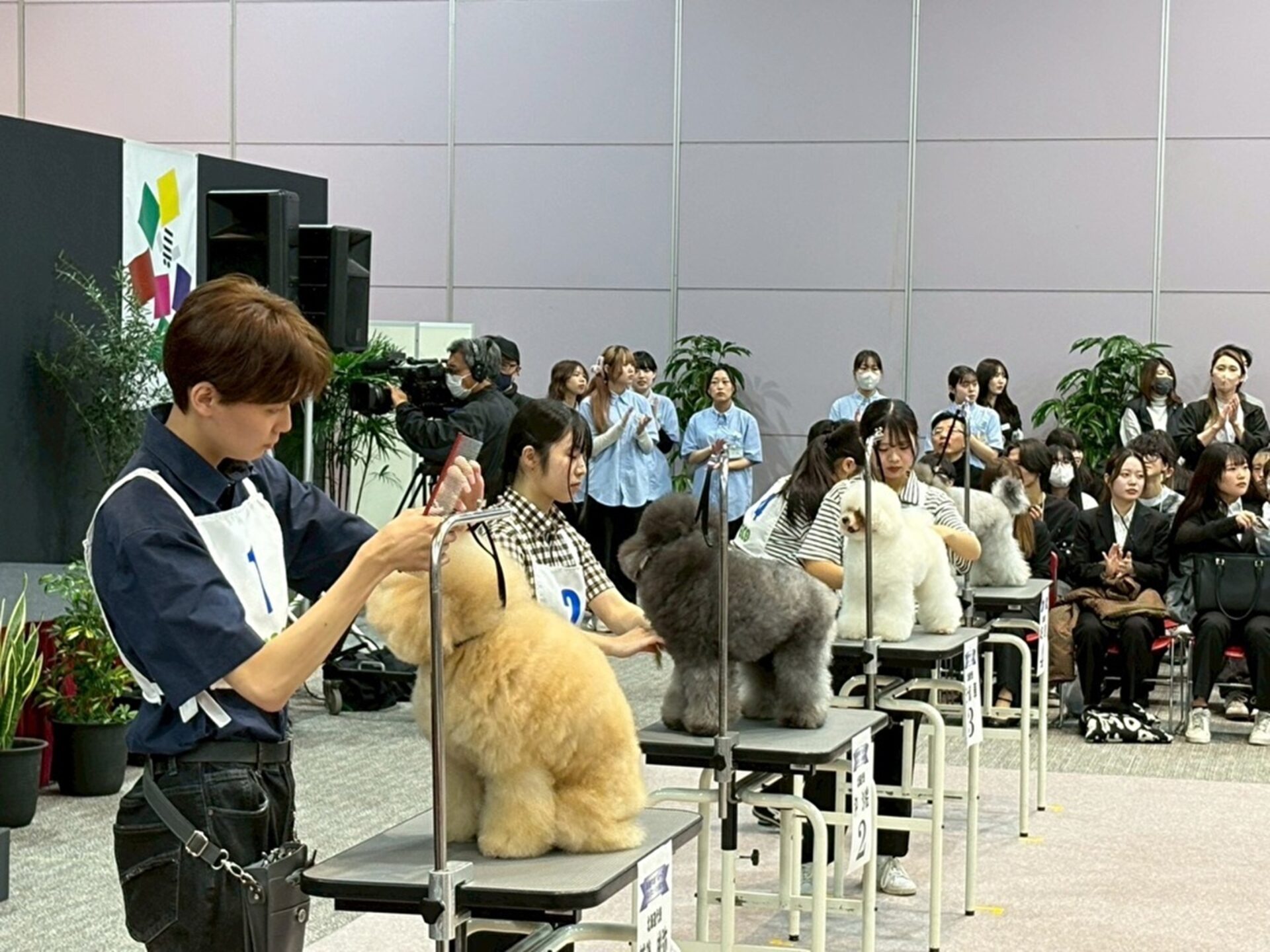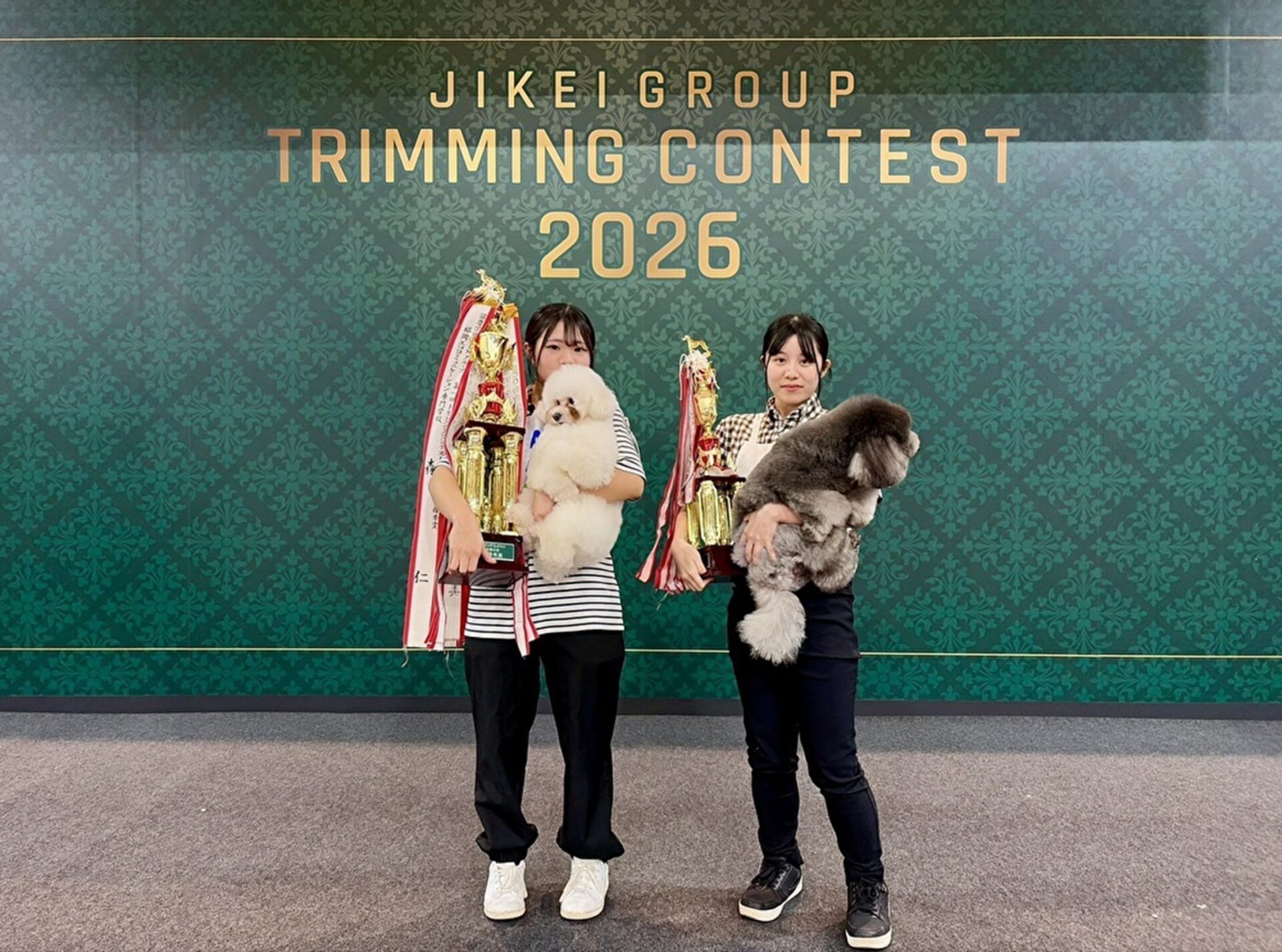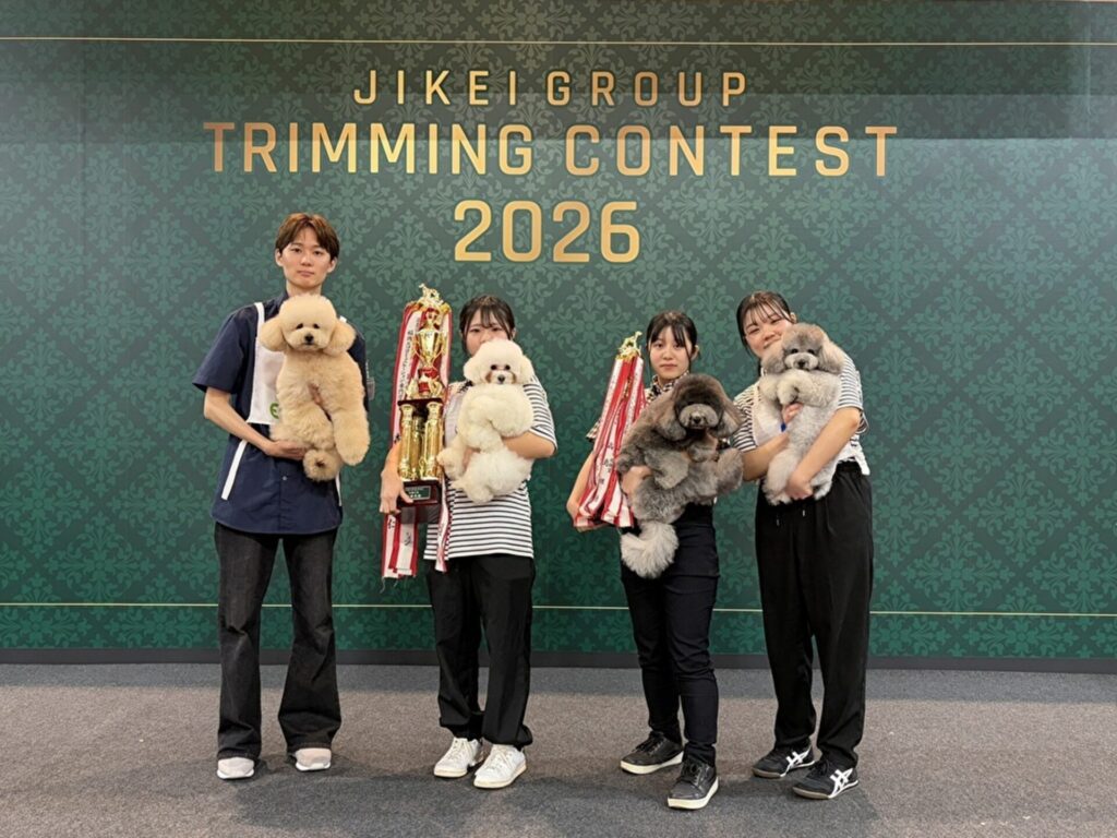 ペットトリマーを目指す滋慶学園グループ全国6校(北海道・仙台・東京・名古屋・大阪・福岡)の学生たちがトリミング技術を競う「滋慶学園グループ トリミングコンテスト全国大会2026」が、2月21日(土)に大阪・南港のATCホールで開催され、北海道エコ・動物自然専門学校からも学生4名が出場しました。6校から選抜された学生22名がそれぞれの学校の代表としての誇りを胸に、日頃の学びの成果を発揮する舞台。互いを高め合う前向きな空気が流れ、全国レベルの高い技術が披露される中、本校の学生は最優秀など素晴らしい成果を収めました。
