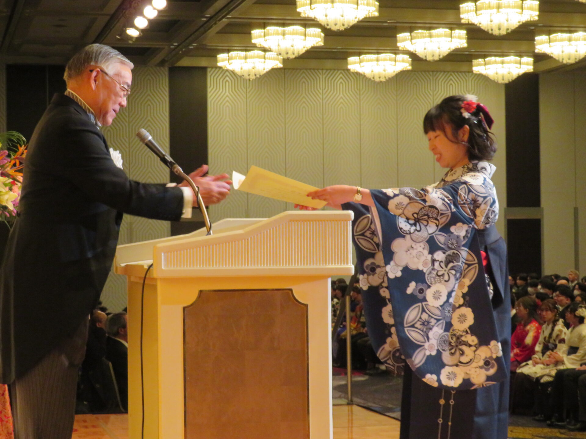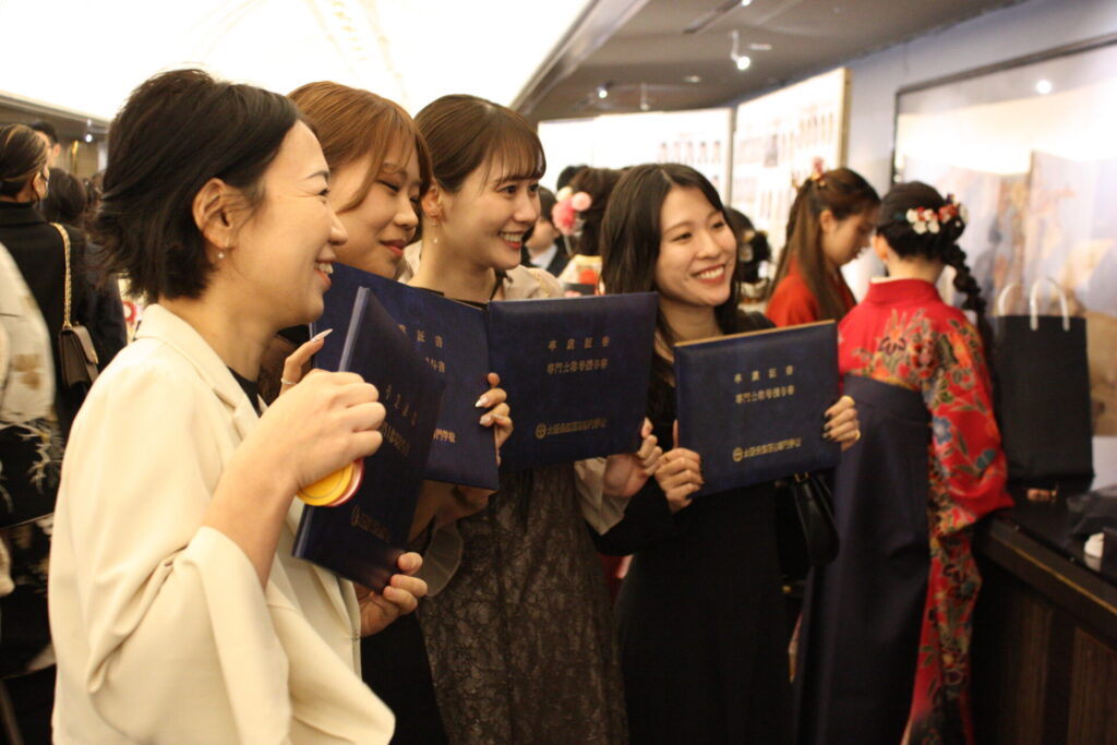 また様々な人とのネットワークの大切さを説き、「そのための基本はコミュニケーション。学校のいたるところに掲げられていた『今日も笑顔であいさつを』の標語を心に刻み、ぜひ明日からの職場にも持っていってください」と強調しました。滋慶学園グループのネットワークが北海道から九州まで広がっていることを挙げ、その繋がりを存分に活用してください、とアドバイス。「一人ひとりが自信を持ち、人生を楽しみながら自らの道を歩んでください」と締めくくりました。