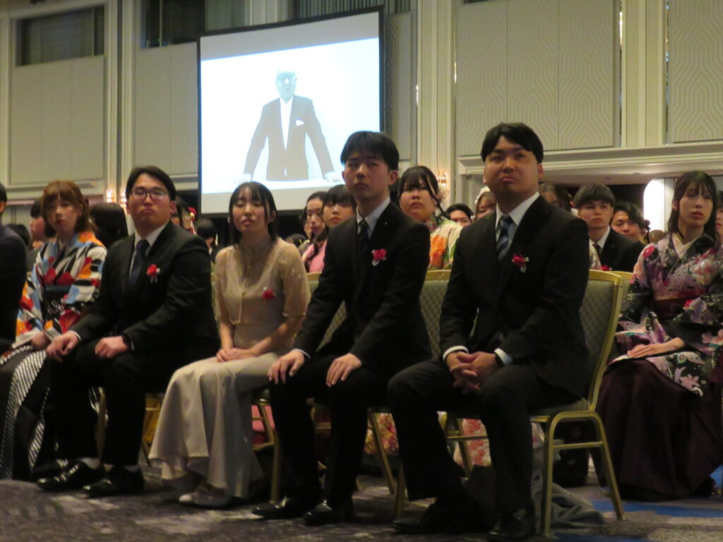 「皆さんはプロとして仕事をするためのスキルや知識、そして社会人としての人間力を養ってこられました。しかし、それは決して簡単な道のりではなかったはずです。高度な技術の習得、膨大な知識、コミュニケーションの難しさに悩み、壁にぶつかったこともあったでしょう」とねぎらい、様々な困難を乗り越えてこの日を迎えたことを称えました。
