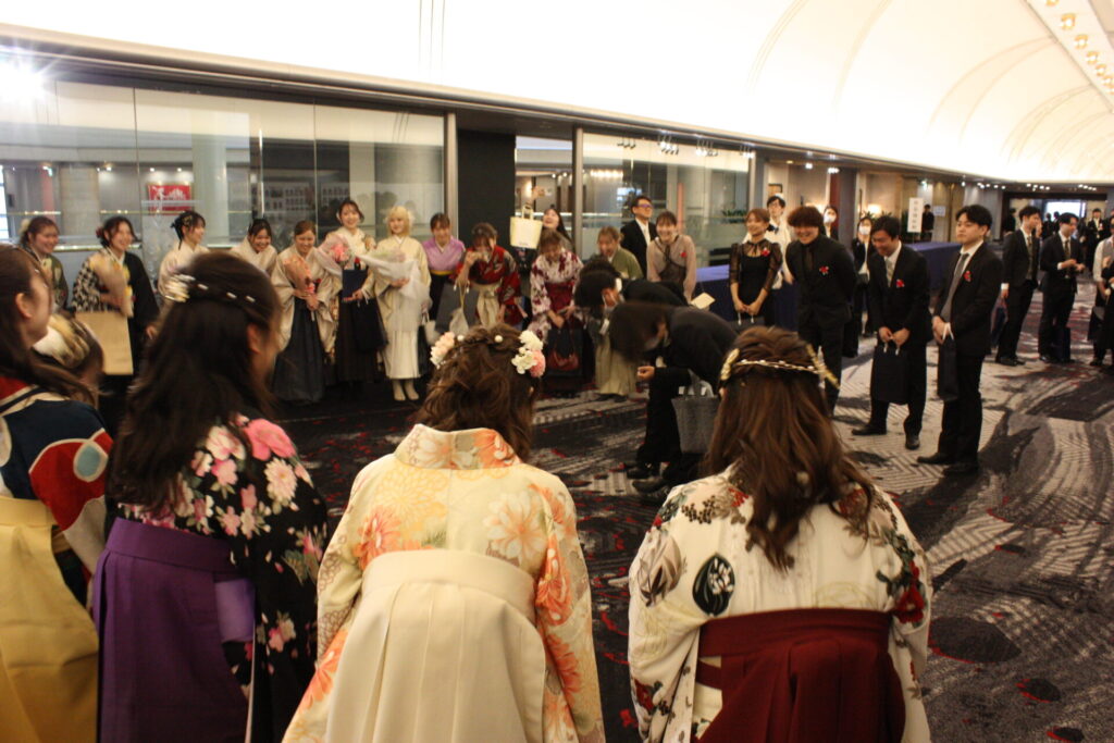 「多くの成果や学びを得ることができたのは、クラスメートや先生、業界の方々などのおかげ。もう一度4年間を過ごしたいと思うくらい感謝しています」と語りました。坂東さんは社会福祉士と精神保健福祉士の2つの国家試験に合格。長岡京市社会福祉協議会で活躍します。「みんなと共にという気持ちを胸に、社会人として新たな一歩を踏み出します」と誓いました。