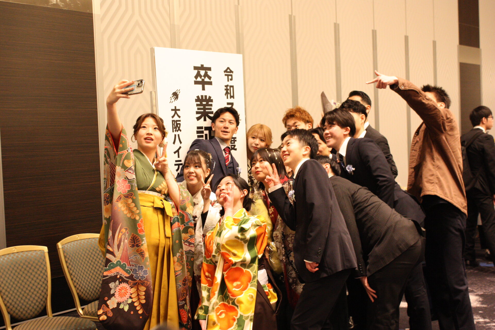 式典が終わると仲間たちと記念撮影。それぞれの道に踏み出す卒業生は再会を約束したり、友情を確かめ合ったりしていました。