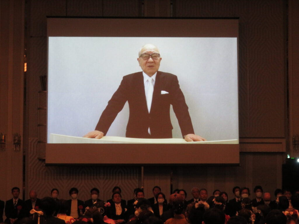 滋慶学園グループ総長である大阪滋慶学園の浮舟邦彦理事長は、ビデオでお祝いの言葉を贈りました。