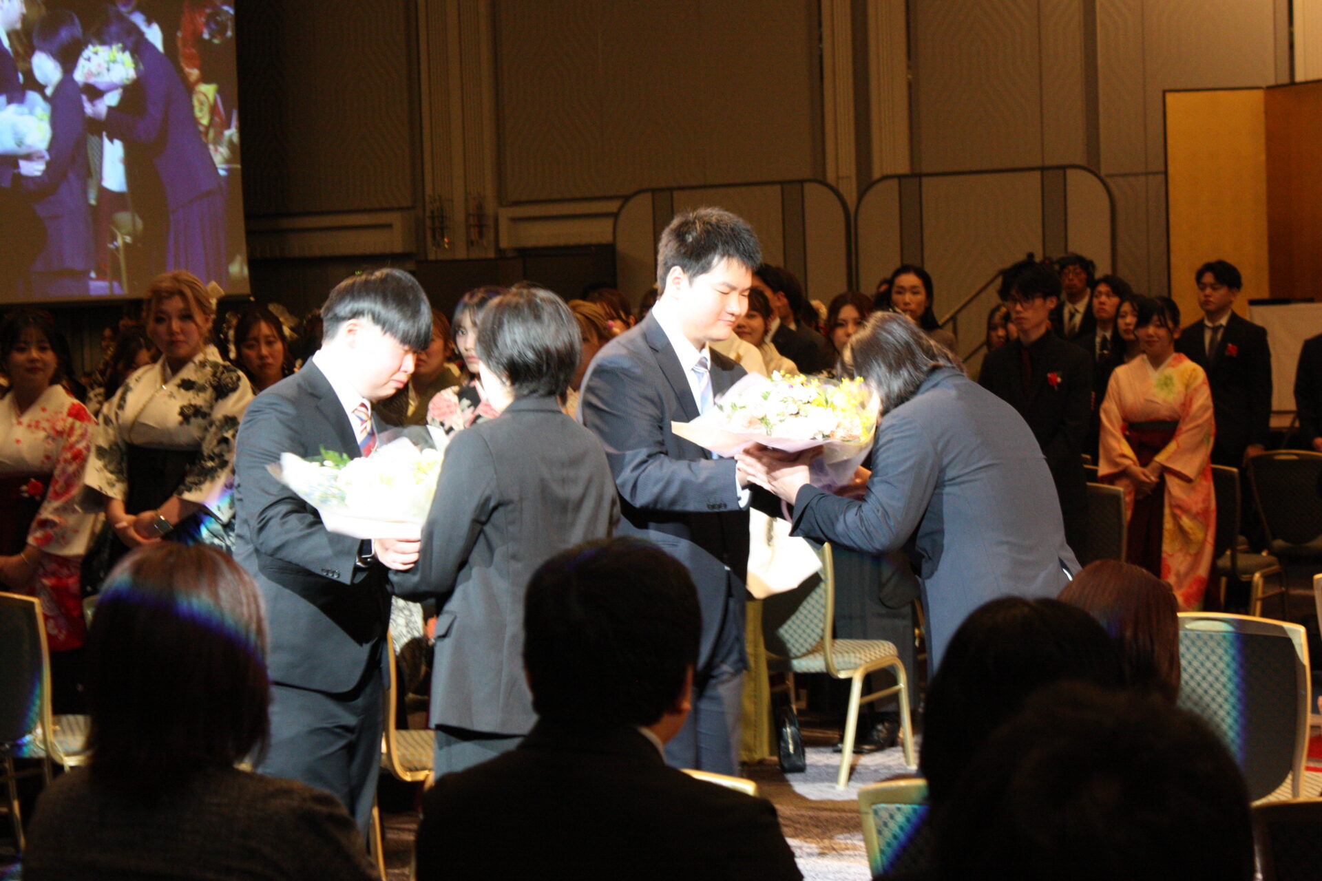 見守ってくれた家族へ感謝を込めて花束贈呈