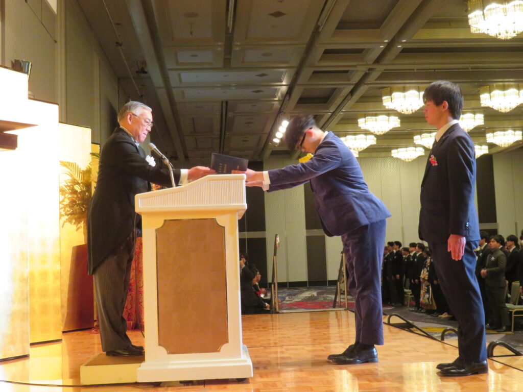 大阪城の桃の花が咲き始めた3月10日(火)、学校法人大阪滋慶学園が運営する大阪ハイテクノロジー専門学校と大阪保健福祉専門学校の卒業証書授与式が、ホテルニューオータニ大阪(大阪市中央区)で行われました。卒業生は合わせて489人。大阪ハイテクノロジー専門学校の福菅佑真さんと大阪保健福祉専門学校の坂東蒼太さんが、代表して教職員や学友、家族に感謝の言葉を述べ、感動的な雰囲気に包まれました。「飛翔~2026新しい時代へ~」というテーマのとおり、卒業生たちは希望を胸に大きく羽ばたいていきました。