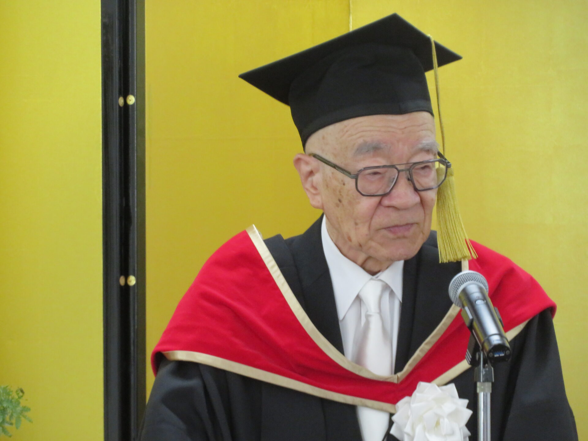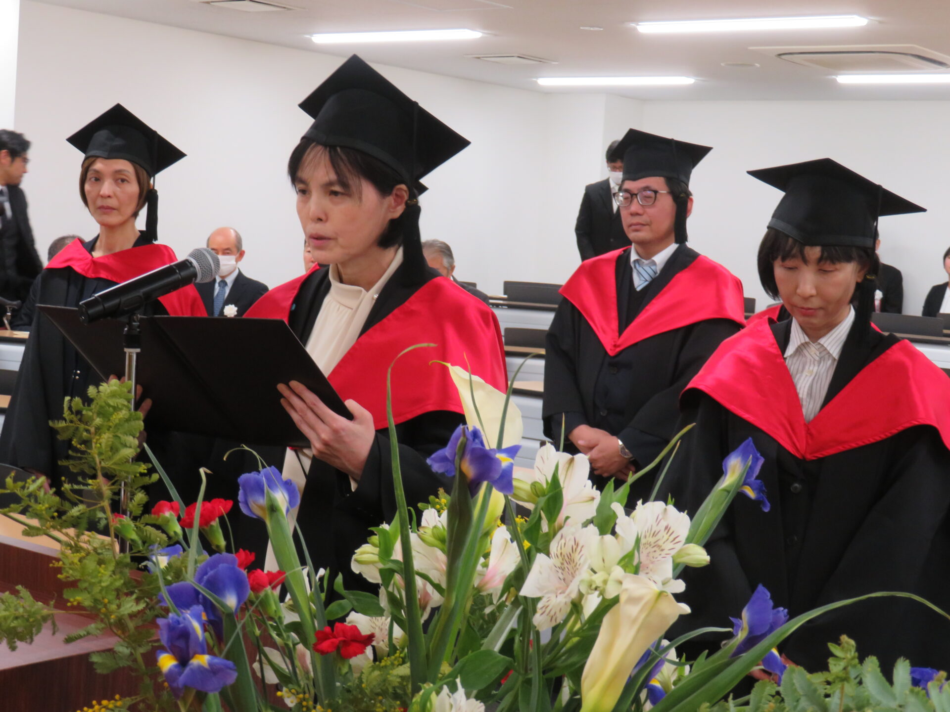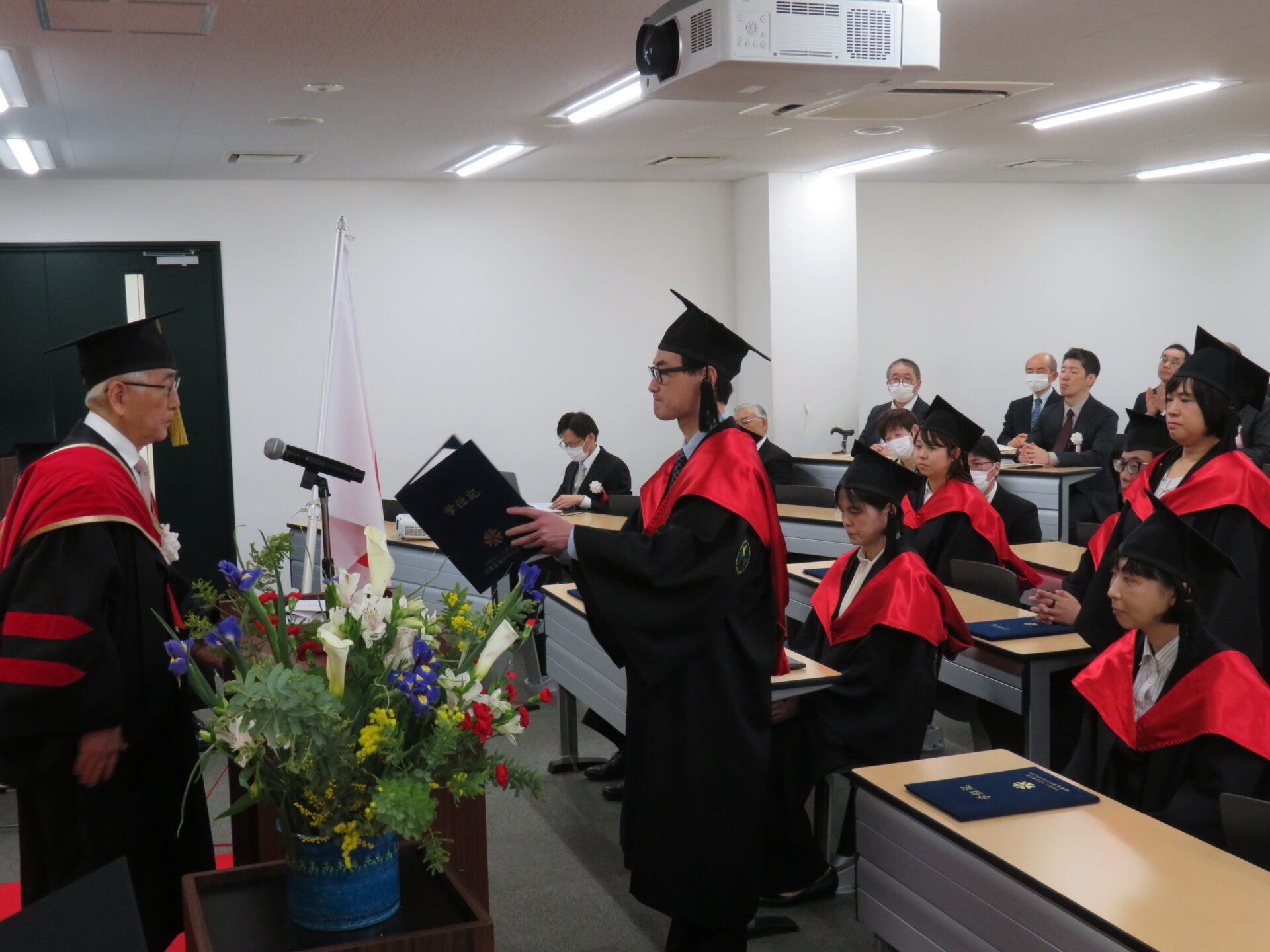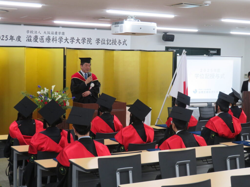 大学の運営母体である学校法人 大阪滋慶学園の浮舟邦彦理事長は祝辞で、パンデミックや医療改革という環境下で、仕事・家庭・学業を両立させた努力に敬意を表しました。