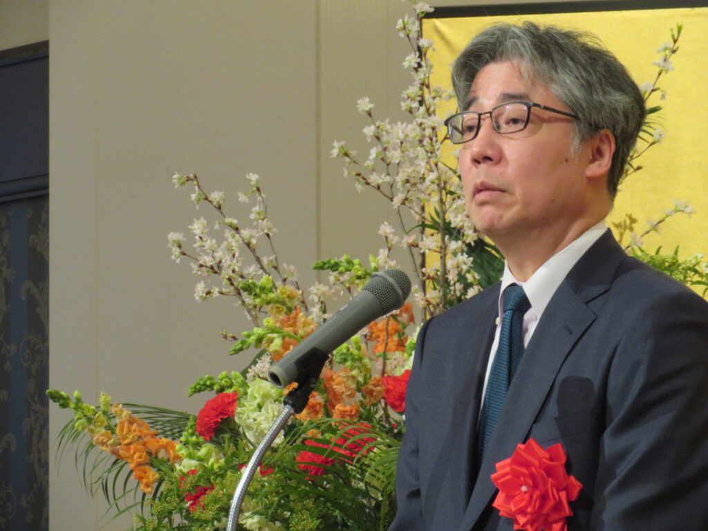 続いて学校法人大阪滋慶学園の浮舟邦彦理事長が登壇。理事長は、学園の始まりである1976年の新大阪歯科技工士学院(現在の新大阪歯科技工士専門学校)の創設からちょうど50年という歴史の節目にあたることを説明しました。