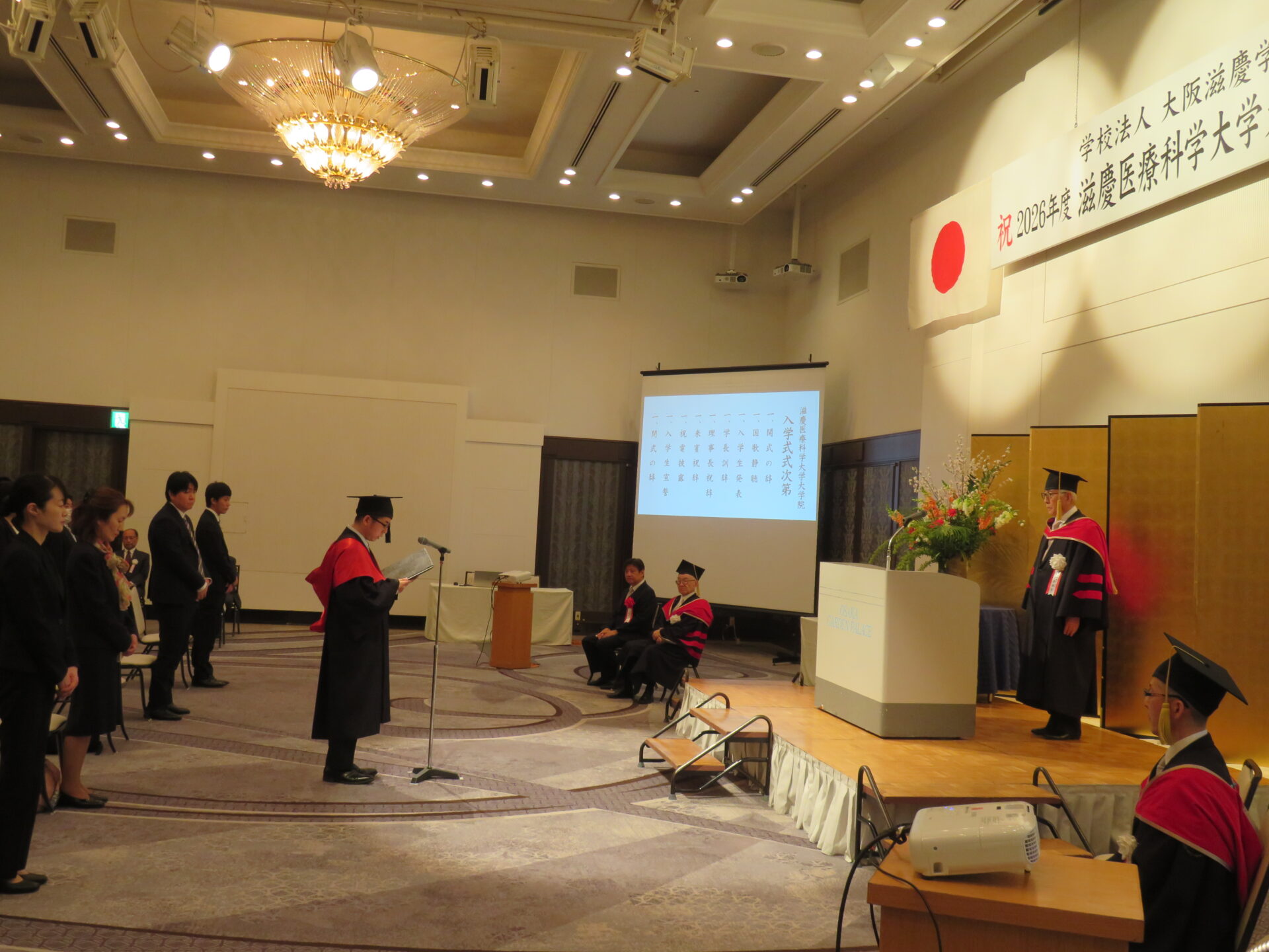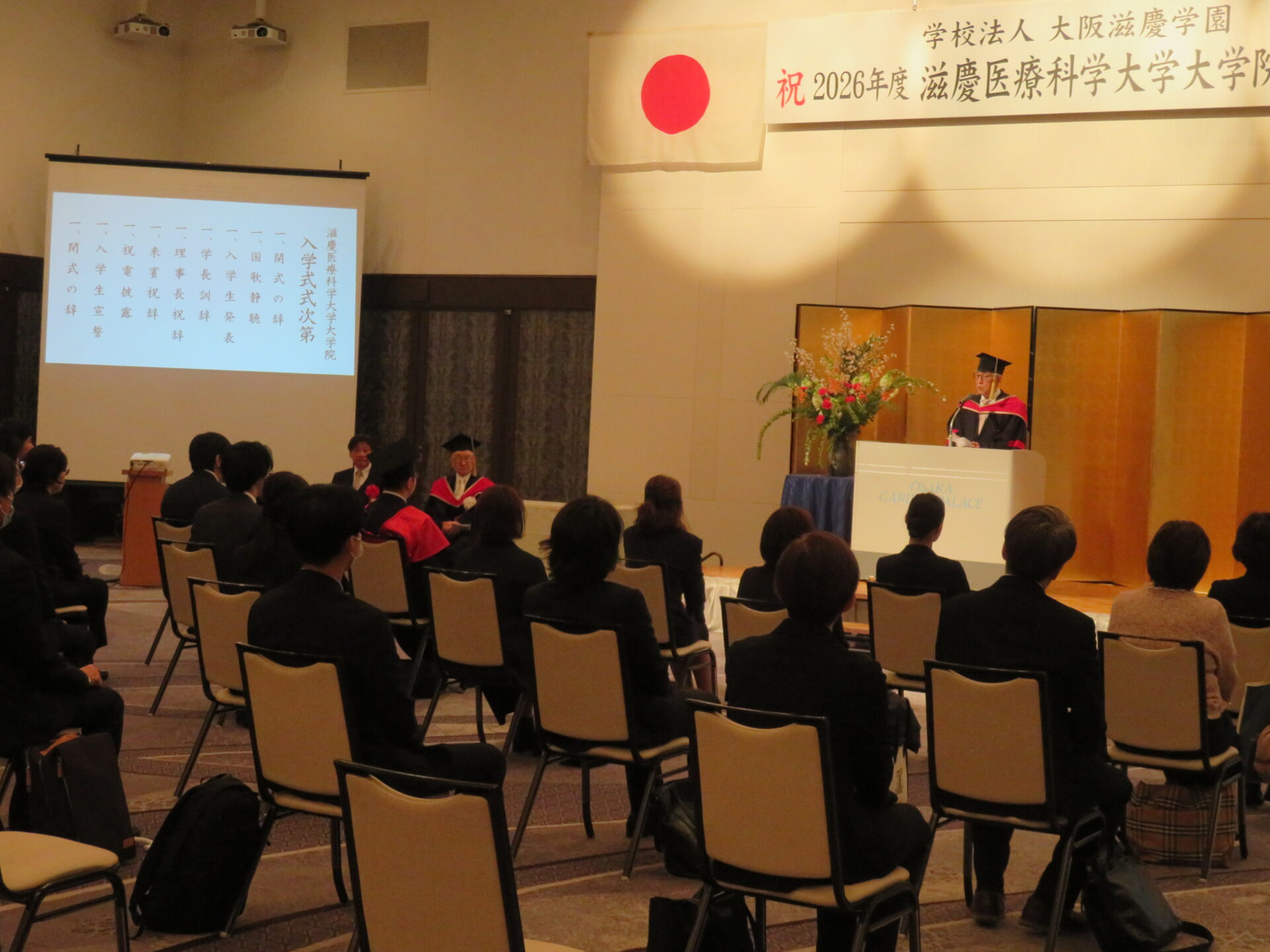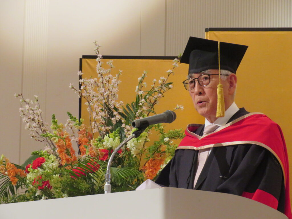 運営母体である学校法人大阪滋慶学園の浮舟邦彦理事長は祝辞で、まず2011年に日本で初めて医療安全を専門とする滋慶医療科学大学院大学として開設されて以来、成果をあげてきた歴史について言及しました。